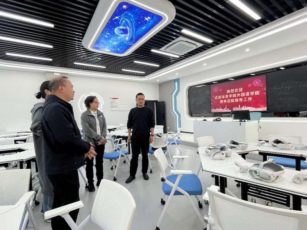 3月27日,外国语学院一行来到四川外国语大学,重点参观了外语虚拟仿真实验实训中心。该中心是四川外国语大学深化教育教学改革的重要载体,通过虚拟仿真技术构建沉浸式语言学习环境。外国语学院一行详细了解了中心在翻译实践、跨文化交际等场景中的应用案例,并就如何结合人工智能技术优化教学设计展开交流探讨。