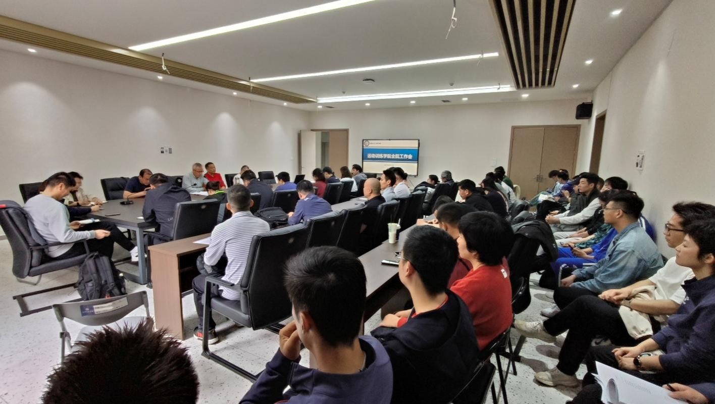 4 月 11 日中午,运动训练学院在网球馆 2 楼会议室召开全院工作会,全体教职工参加。会议由杨成波院长主持。