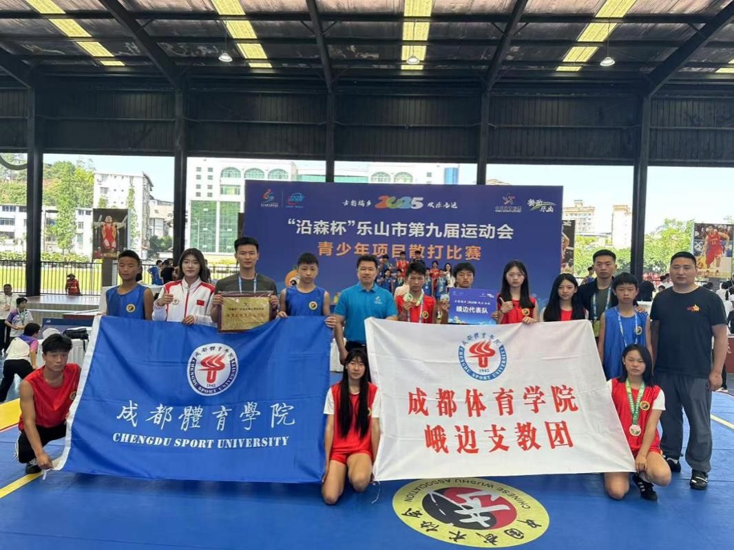 在乡村振兴战略的深入推进中,武术学院帮扶干部李春雷扎根峨边彝族自治县,以教育振兴、人才振兴为抓手,成功组建峨边彝族自治县首支武术散打代表队。近日,这支新生队伍在乐山市第九届运动会武术散打比赛中一鸣惊人,斩获2枚银牌、1枚铜牌及5个第五名的优异成绩,填补了峨边武术竞技领域的空白,为当地播撒下武术传承与发展的种子。