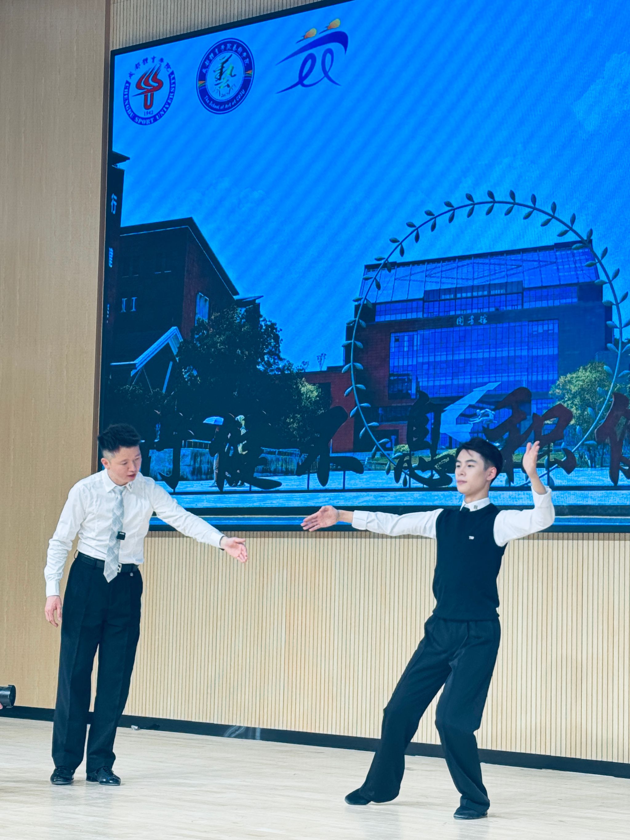 近日,艺术学院国际标准舞教研室教师团队受成都电视台《幸福188》栏目特邀,参与“世界运动会体育舞蹈项目”科普教学系列节目录制。节目围绕体育舞蹈中拉丁舞和标准舞两支舞系展开,共录制6期,涉及华尔兹、探戈、快步、牛仔、恰恰5个舞种。节目于5月21日起每晚20:00在成都电视台第3套播出。