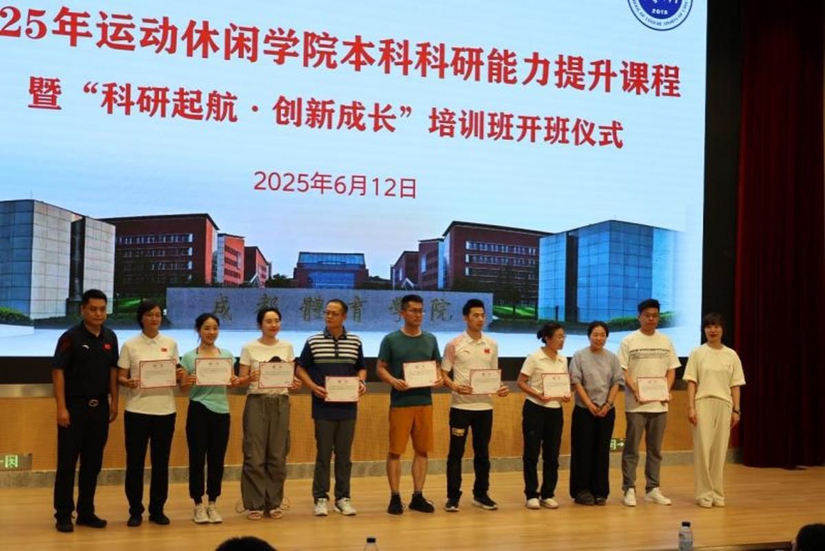 6月12日,运动休闲学院举办“科研起航·创新成长”2025年本科生科研能力提升系列课程的开班仪式。学院党委副书记樊莉、副院长蒋书君,以及全体课程导师和本科生参加活动。