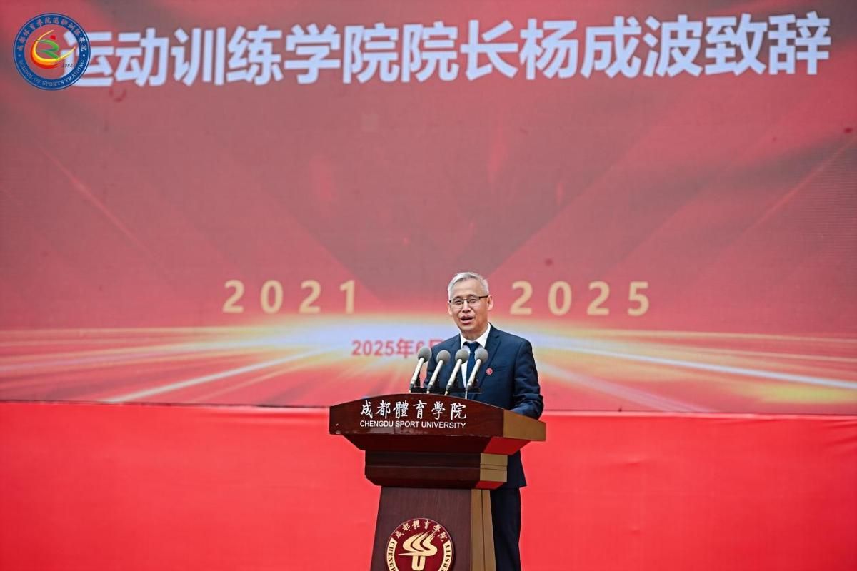 运动训练学院杨成波回顾了学院在竞技体育人才培养和学科建设上的突出成果,充分肯定毕业生们践行“笃训卓竞 业精技专”的专业精神。他寄语学子:“人生没有无法翻越的火焰山!前路纵有坎坷,只要信念不熄、斗志不垮,必能登临绝顶。望你们以‘一勤天下无难事’的狠劲拼搏,在更广阔的人生赛场上续写成体人的奋进诗篇!”