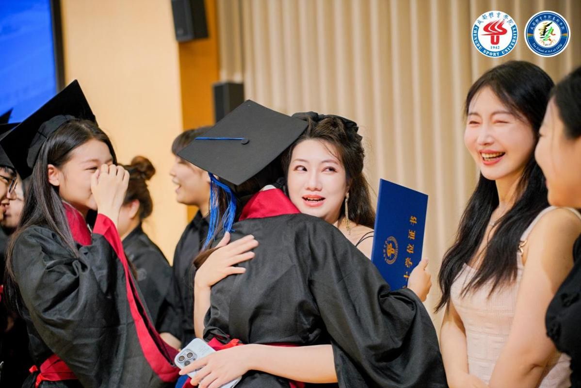 学校学位评定委员会委员、艺术学院院长邱建钢教授宣读学位授予决定。随后,庄重的授位仪式正式开始,学院博士生导师、硕士生导师、教师团队分别为博士学位、硕士学位、学士学位获得者拨穗正冠。同时,全院教师自发在台侧为毕业生温情拥抱告别。