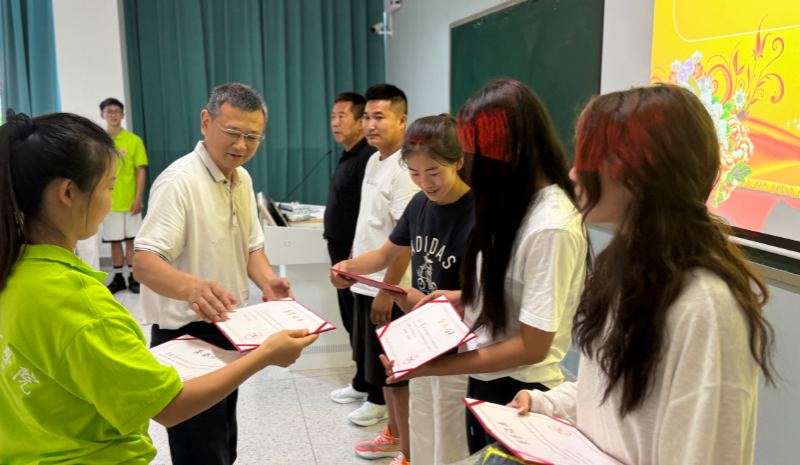 结业仪式上,学员们的特色表演使人振奋。研修汇报中学员对32天的培训做了详尽的分班汇报。对学院精心设计的一系列课程和活动表示感谢,研修汇报围绕“体育教育理念提升、运动技能提升、理论素养提升、教学能力提升、科研能力提升”五大核心板块展开。培训中,授课教师们通过专题讲解、实操演练、案例分析、教学观摩等多种形式,不仅为学员们带来了新的体育教学理念和方法,还使参训学员在运动损伤防护、篮球、足球、排球、武术、体操、田径、体能、拓展等运动项目,对中高考体育项目的教法上得到了技能的提升。继续教育学院院长何家东发表培训总结,培训科赵正爽同志及项目服务团队出席结业仪式。