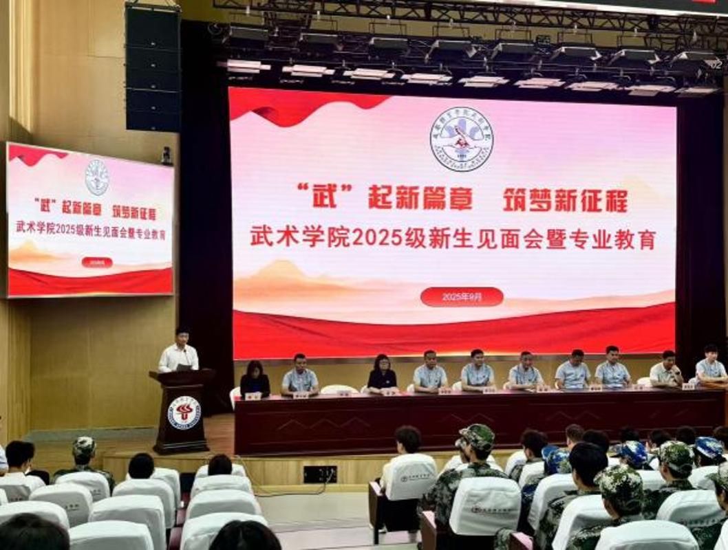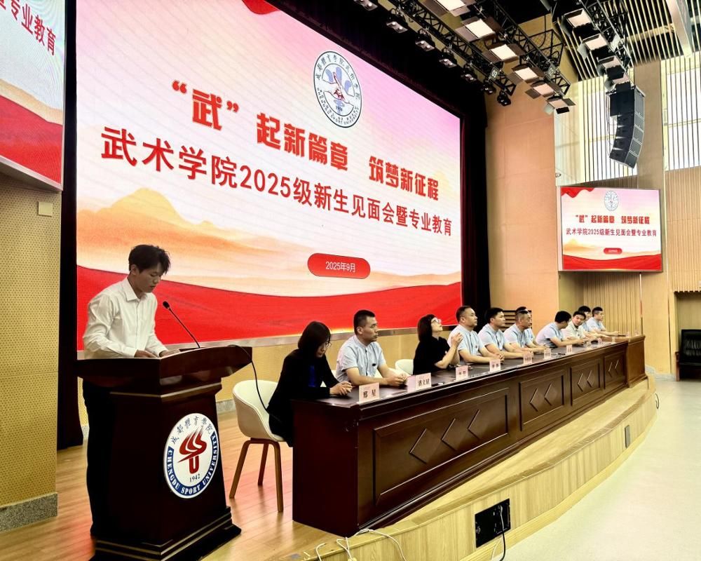9月24日,武术学院2025级新生见面会暨专业教育在行健楼同传室如期举行。武术学院院长赵斌、党委书记罗兴山、副院长李传国,各教研室及科室负责人,新生班主任、主专修教师与186名新生齐聚一堂,共启武术求学新篇。