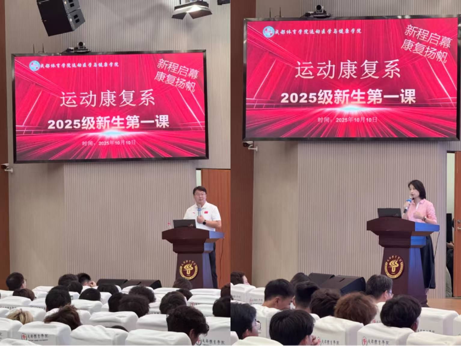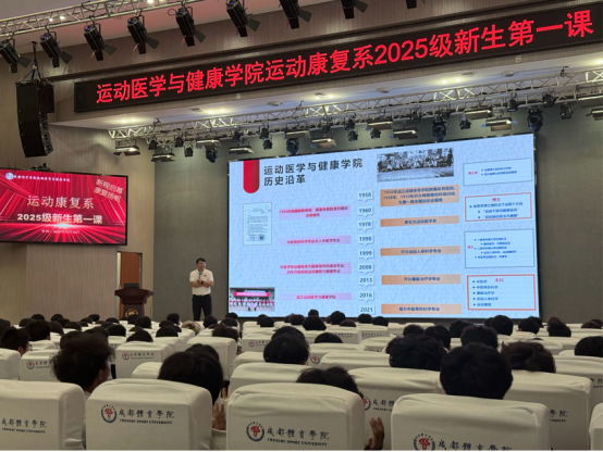 运动医学与健康学院运动康复系新生专题教育“开学第一课”于10月10日在图书馆学术报告厅举行。康复学科带头人、运动康复专业负责人及教研室各位老师出席本次新生教育专题活动,全体新生参与。活动由运动康复系学生管理办公室承办。