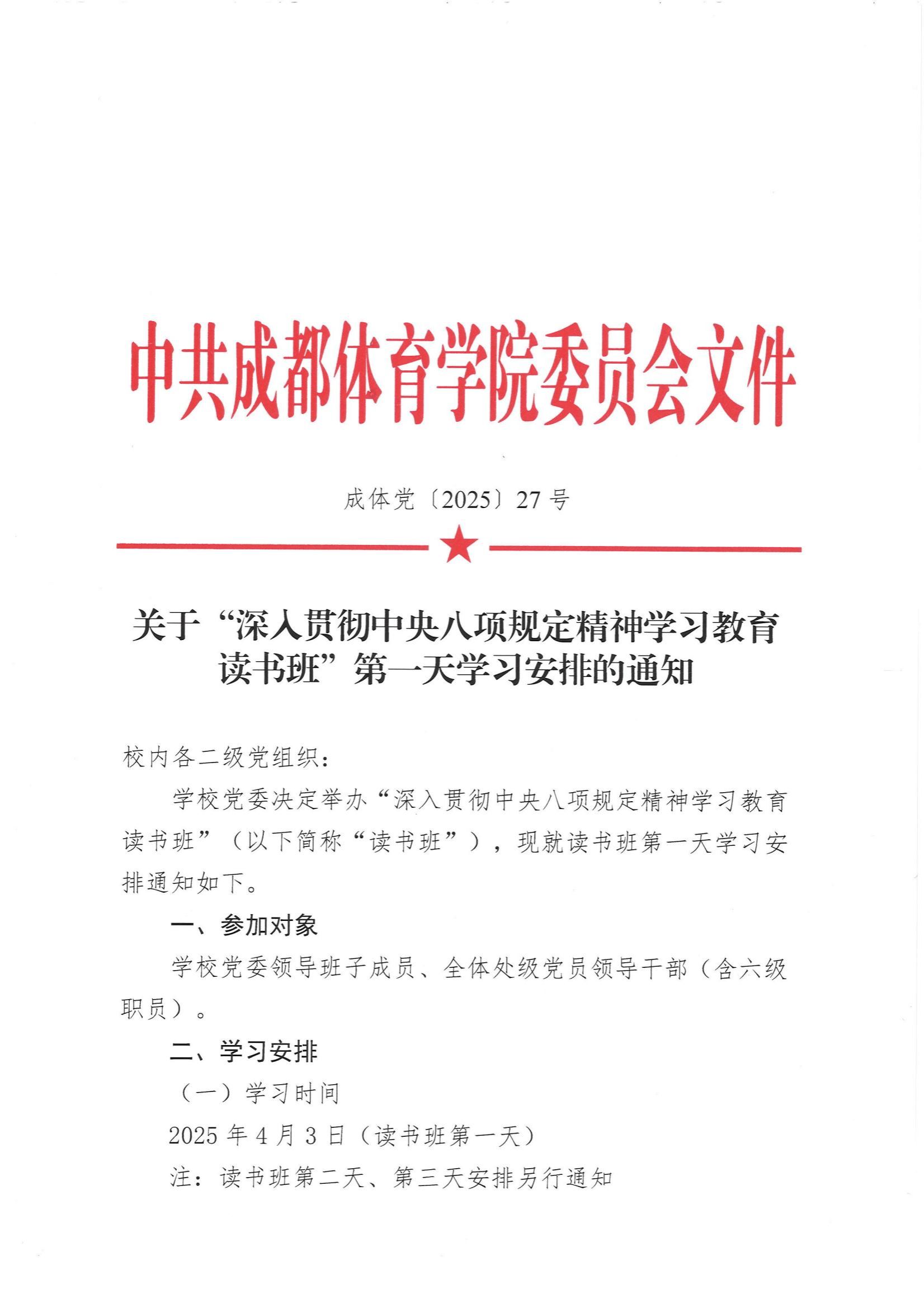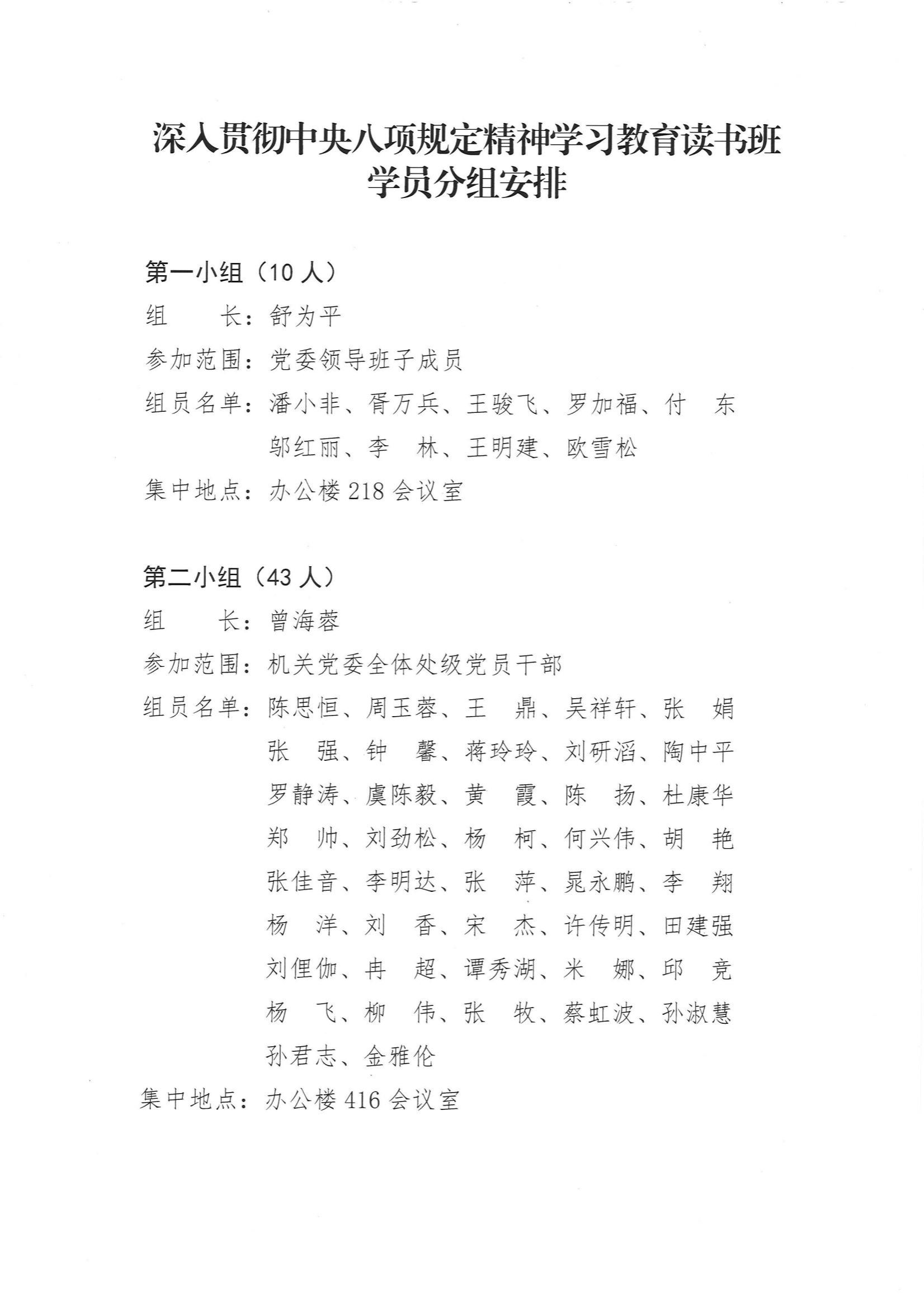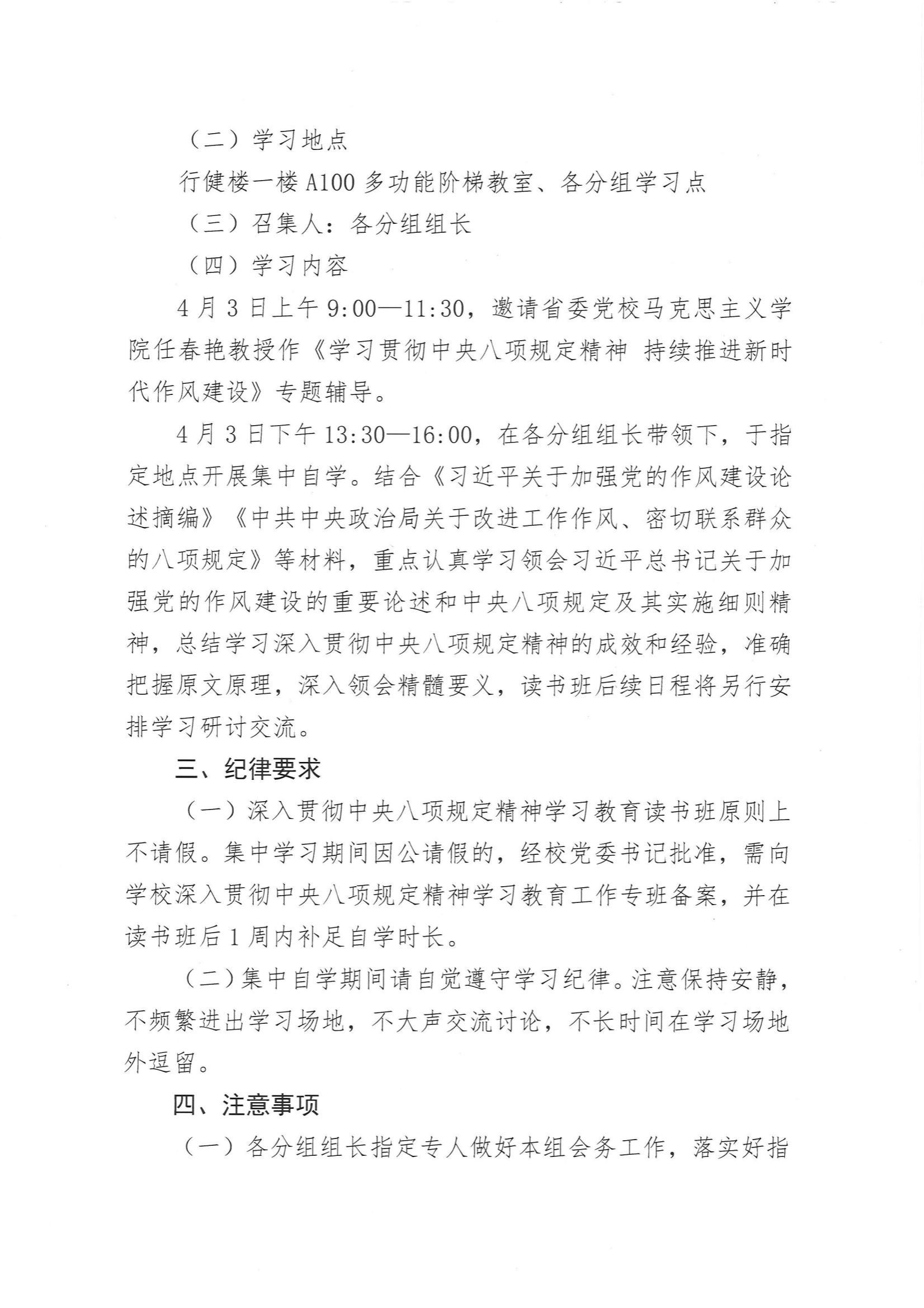 关于“深入贯彻中央八项规定精神学习教育读书班”第一天学习安排的通知