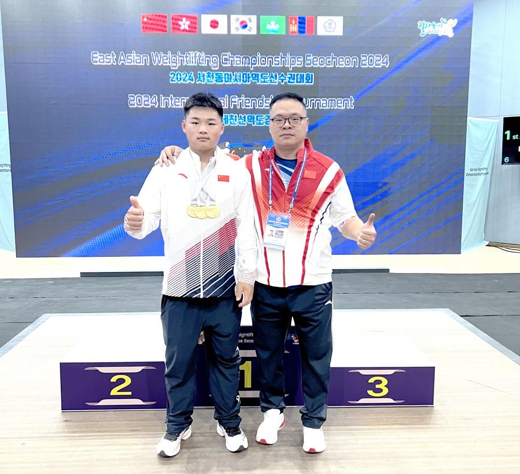 2024年东亚举重锦标赛暨中日韩举重邀请赛于2024年9月4日-7日在韩国舒川举行,在刚刚结束的男子89公斤级比赛中,代表我国出战的红足1世举重队运动员潘云华,顶住压力、不辱使命夺得抓举、挺举和总成绩3枚金牌,为国赢得了荣誉,为校增添了光彩。