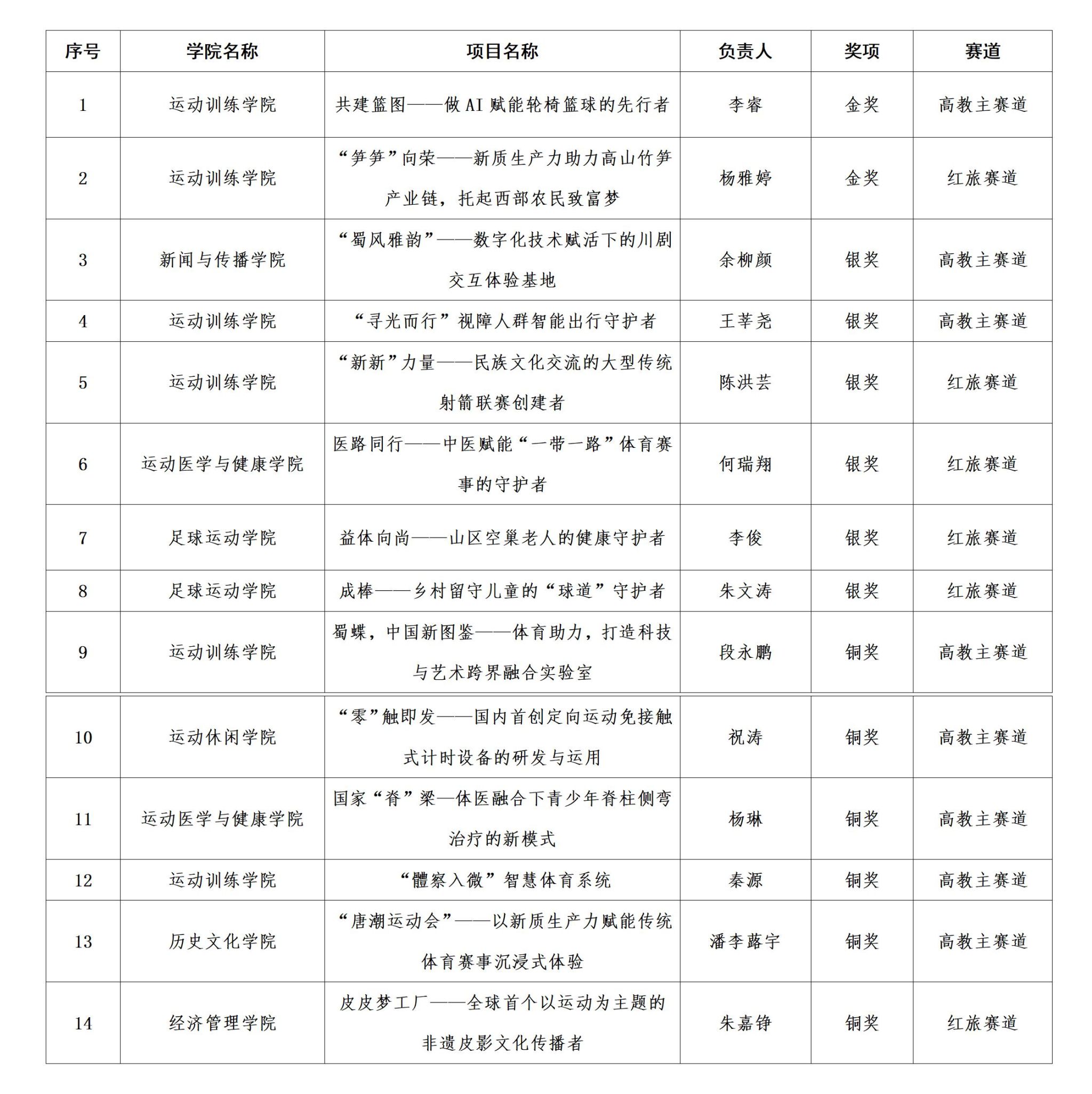 红足1世获四川省国际大学生创新大赛奖项基本情况一览表