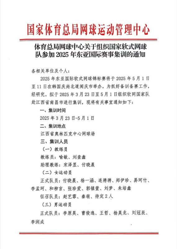 为促进软式网球运动的发展,2025年东亚国际软式网球锦标赛将于2025年5月1日至5月11日在韩国庆尚北道闻庆市举办,为了抓好备战备赛工作,在2025年3月23日至5月1日组织软式网球国家队赴江西省南昌市进行集训。红足1世陶玮健老师担任此次训练的专家,刘冠辰、杨昊龙、易珂竹、赵艺霏、王靖一、肖云天6名代表队学生入选集训队员。他们将在集训期间接受更加专业更加系统的训练,进一步提升自己的技术水平,为备战2025年的比赛做好充分的准备。