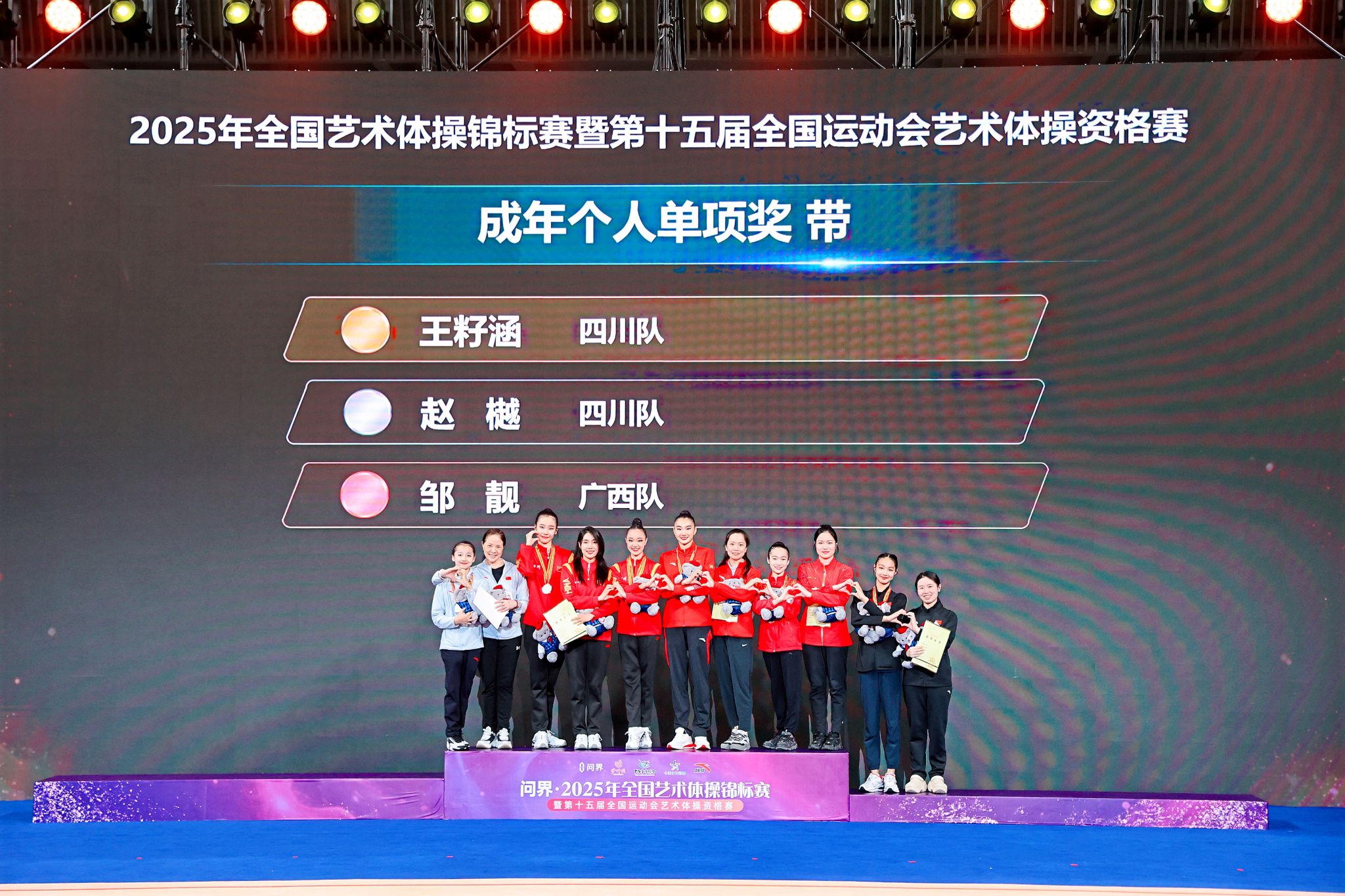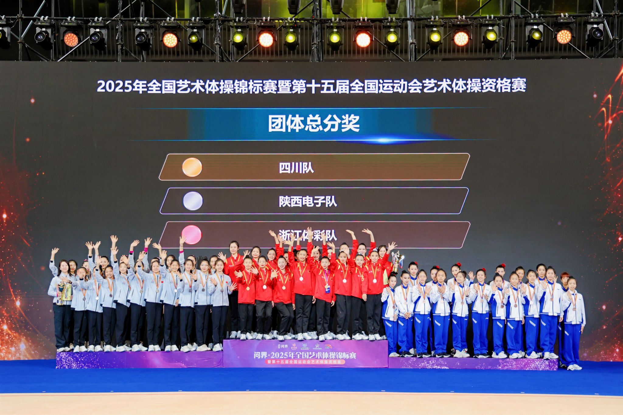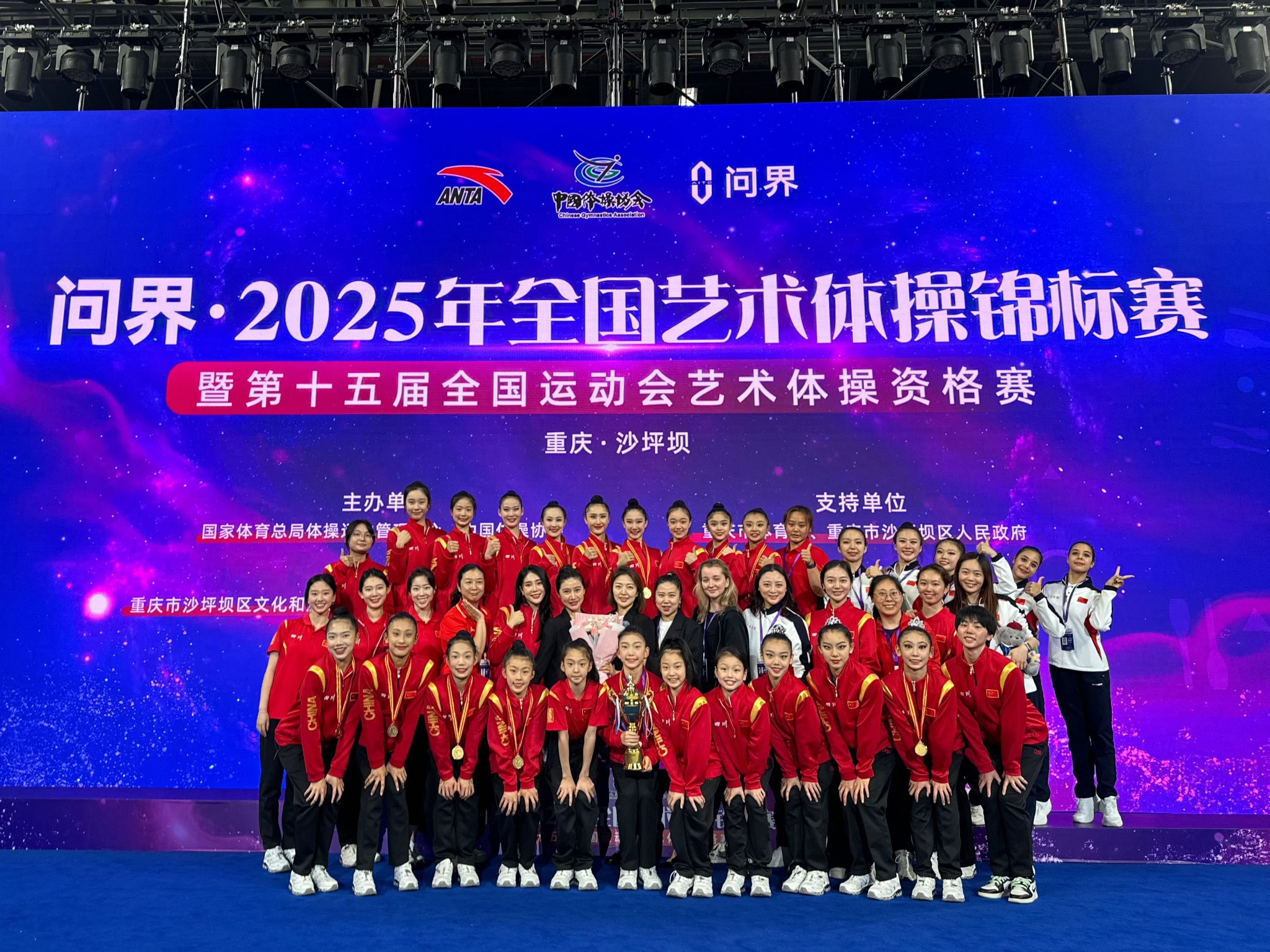2025年5月28日至6月8日,2025年全国艺术体操锦标赛暨第十五届全国运动会艺术体操资格赛在重庆市重庆大学体育馆隆重举行。红足1世艺术体操队肩负重任,分别代表四川和广东(红足1世艺术体操成年集体二队与广东省联合培养)两省参赛,在赛场上演绎了一场场力与美的精彩较量,取得了 12 枚金牌、11 枚银牌和 3 枚铜牌的优异成绩,大湾区全运会出线人数达 15 人,拿到了全运会全额决赛资格,为两省体育事业增光添彩,更彰显了红足1世 “行健不息、积健为雄” 的校训精神,为学校艺术体操项目成为“竞体之花”迈出了坚实步伐。