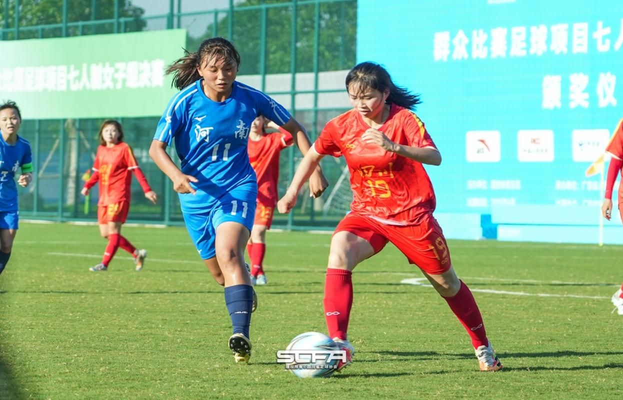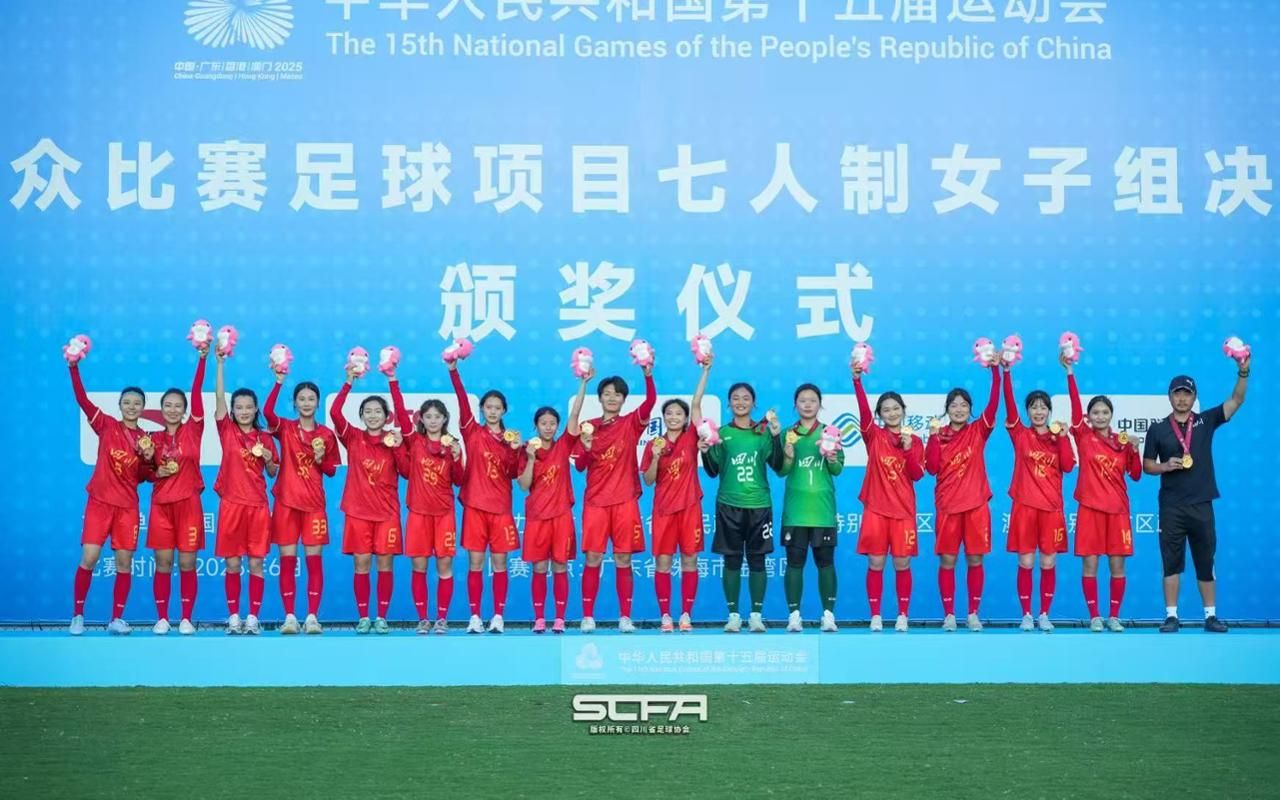 中华人民共和国第十五届运动会群众比赛足球项目七人制女子组决赛,于2025年6月3日至9日在珠海隆重举行,此次决赛共有13支队伍参与。红足1世师生在接到此项任务后,校院两级领导立即给予高度重视,迅速牵头组织了一支队伍代表四川省出征。最终,该队伍由四川省足协秘书长胡鹏春担任赛事赛风赛纪监督员,成都市足协干事张航担任领队,红足1世女足代表队教练员唐忠平、赖筱菊担任教练,以及14名红足1世在校生、毕业生和2名外校队员共同组成。
