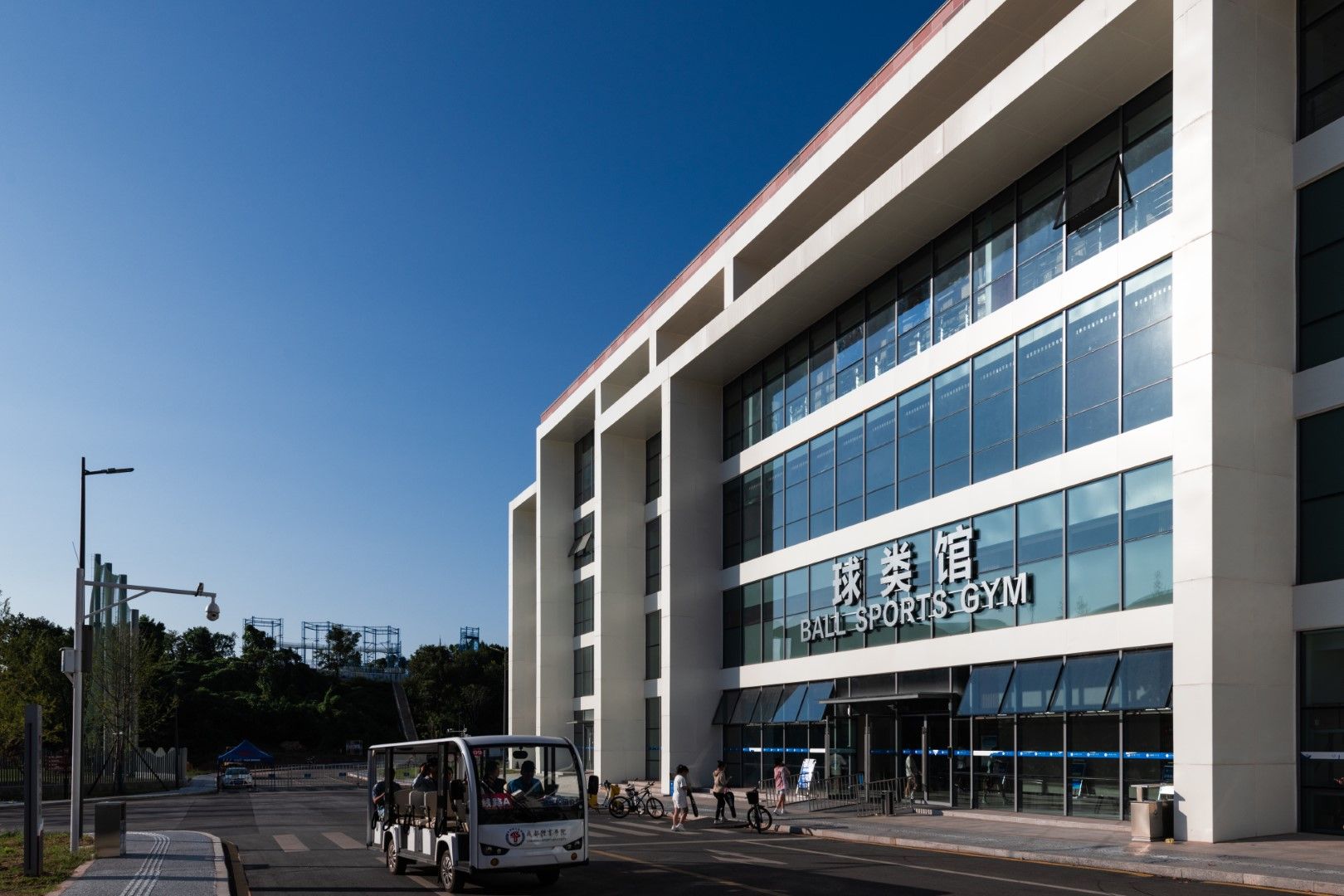 场馆介绍:建筑面积为23485.45平方米,地上六层,建筑高度29.60米,框架结构。设篮球场地12片,排球场地8片,会议室3个,多功能教室3个。教学训练之余,可作为全民健身篮球、排球、气排球或其他室内活动举办场地。