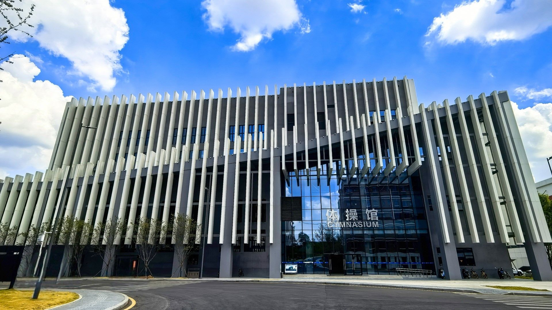 场馆介绍:体操馆建筑面积为10963.50平方米,地上两层,建筑高度26.60米,框架结构。设蹦床1个,双杠场地5片,单杠场地12片,健美操训练场地4片、比赛场地1片。教学训练之余,可作为健身跆拳道、击剑全民健身健美操、舞蹈等或其他室内活动举办场地。