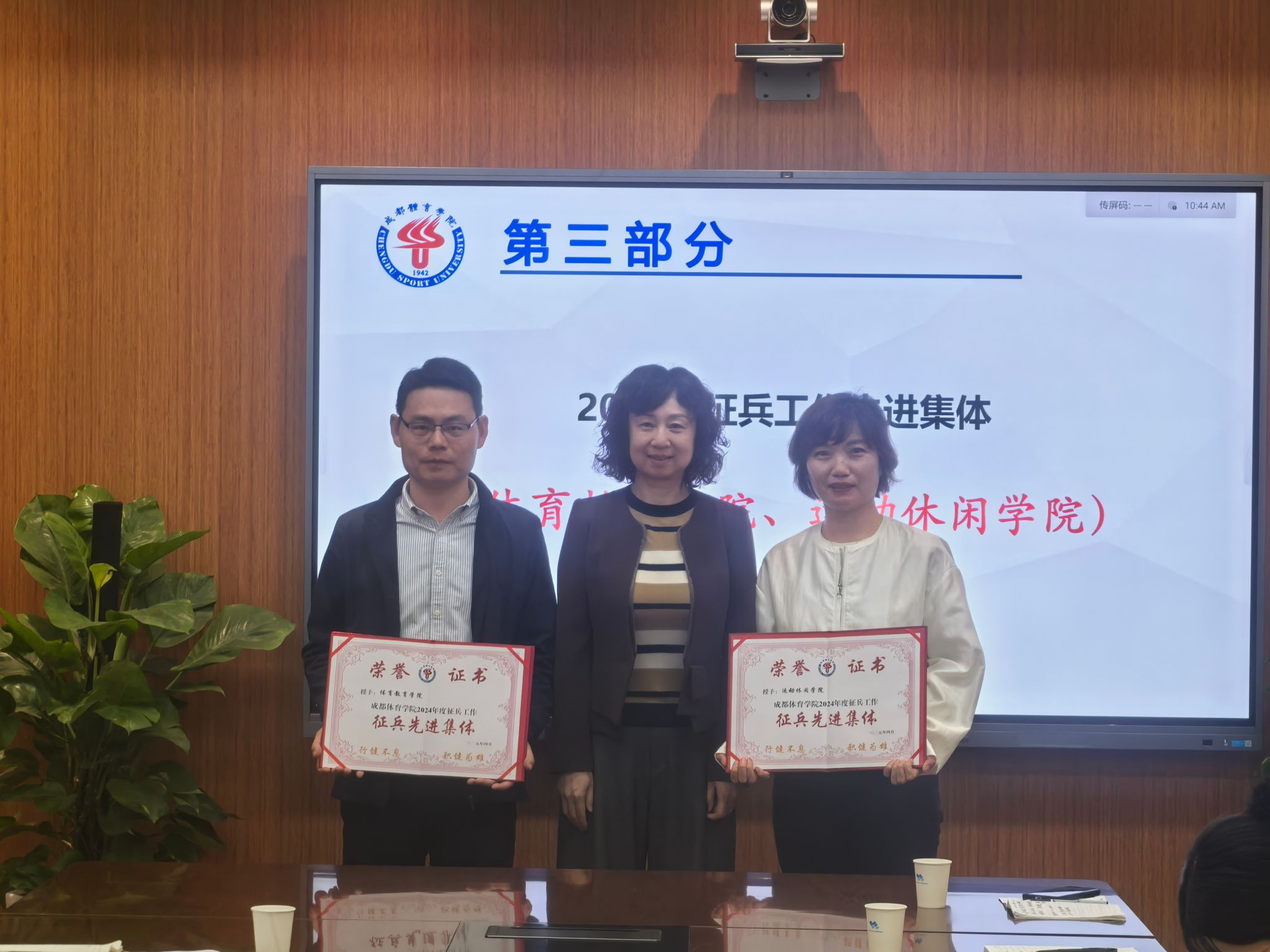 会上,党委学生工作部副部长/学生处副处长/武装部副部长陈扬,向全体参会人员汇报了学校近两年征兵工作情况,并就学校2025年征兵工作进行安排部署;体育教育学院第四本科学生管理办公室主任王天文,进行了征兵工作经验交流分享;最后,对学校2024年度征兵工作先进集体进行了颁奖。