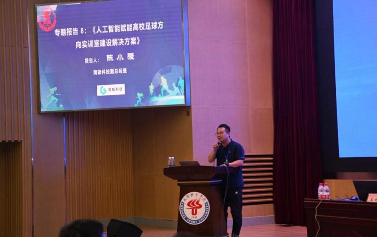 随后,广东派迪茵公司董事长钟文琴和简极科技副总经理陈小强介绍了足球创新科技生产商品和人工智能赋能高校足球方向实训室建设的解决方案。展示了研发的智能足球装备、智慧球场设施等创新科技产品如何深度服务校园与青训,以及如何运用人工智能、物联网及大数据技术,为高校足球方向量身打造的“智慧实训室”综合解决方案。内容涵盖智能数据采集、实时分析反馈、沉浸式战术演练等核心功能,展现了科技赋能足球教学训练落地的强大能力与广阔前景。