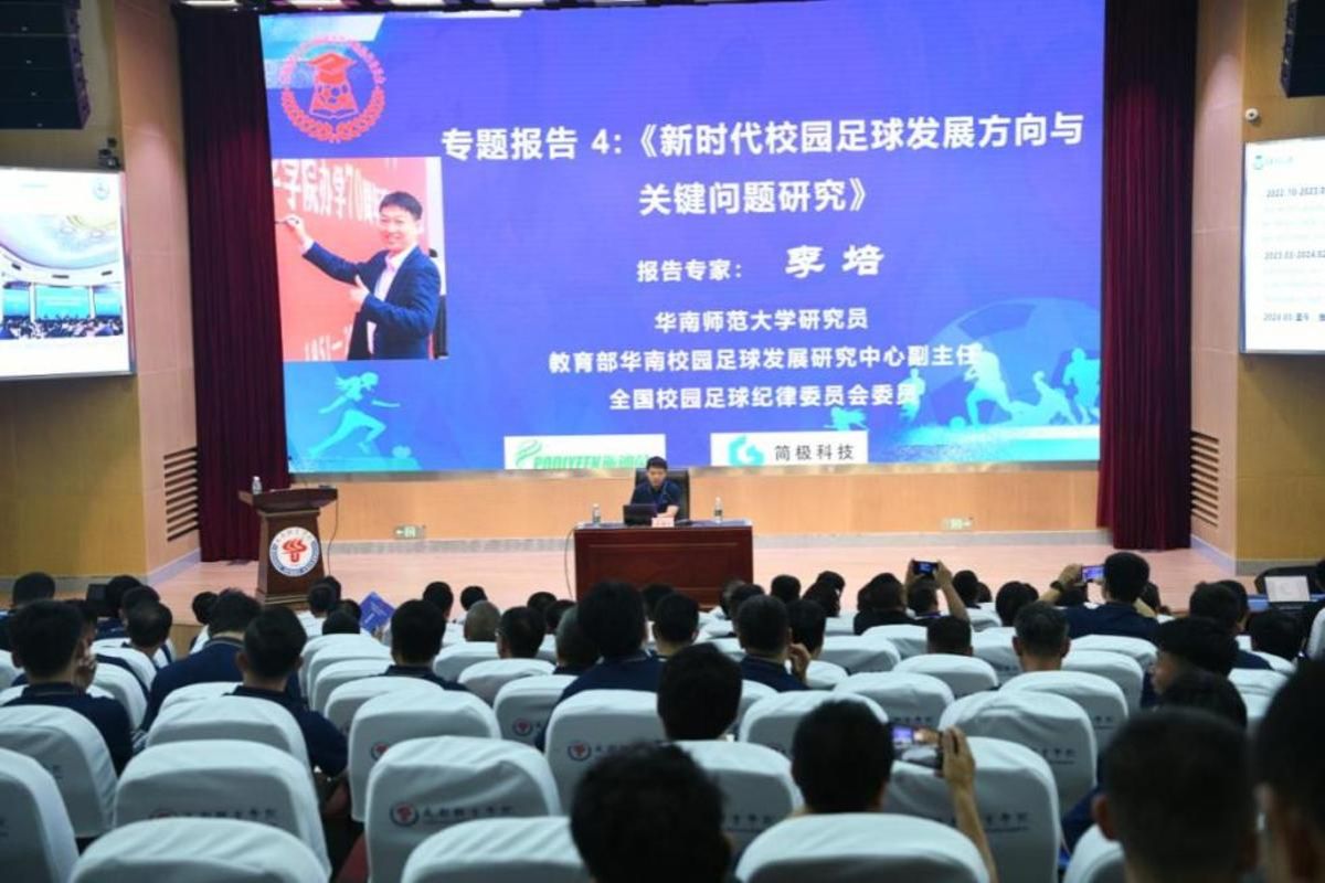 华南师范大学李培教授进行了《新时代校园足球发展方向与关键问题研究》专题报告。基于详实的调研报告,精准分析了当前校园足球在普及与提高、学训矛盾化解、高水平竞赛体系构建、优秀苗子可持续培养通道畅通等方面存在的关键问题。提出未来应着力深化体教融合机制,优化资源配置,完善“一条龙”人才培养体系,并积极探索创新人才培养模式,推进校园足球高质量发展。