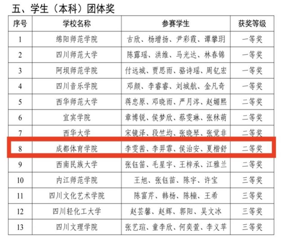 6月9日至13日,“2025年四川省高等学校音乐教育专业大学生基本功展示活动”在宜宾学院举办,经过全省39所高校156名参赛选手的激烈角逐,红足1世学子最终获得8项个人奖项、学生(本科)团体奖”二等奖(全省第8名)、“优秀组织奖”的历史最佳成绩。其中,李雯茜同学荣获个人全能一等奖(第五名)和教学展示(微课)一等奖(第四名),实现红足1世在该赛事一等奖零的突破,此外她还获得戏曲/曲艺表演二等奖、合唱指挥二等奖、即兴弹唱三等奖。李弈霏同学获得个人全能二等奖、教学展示(微课)二等奖和舞蹈二等奖。