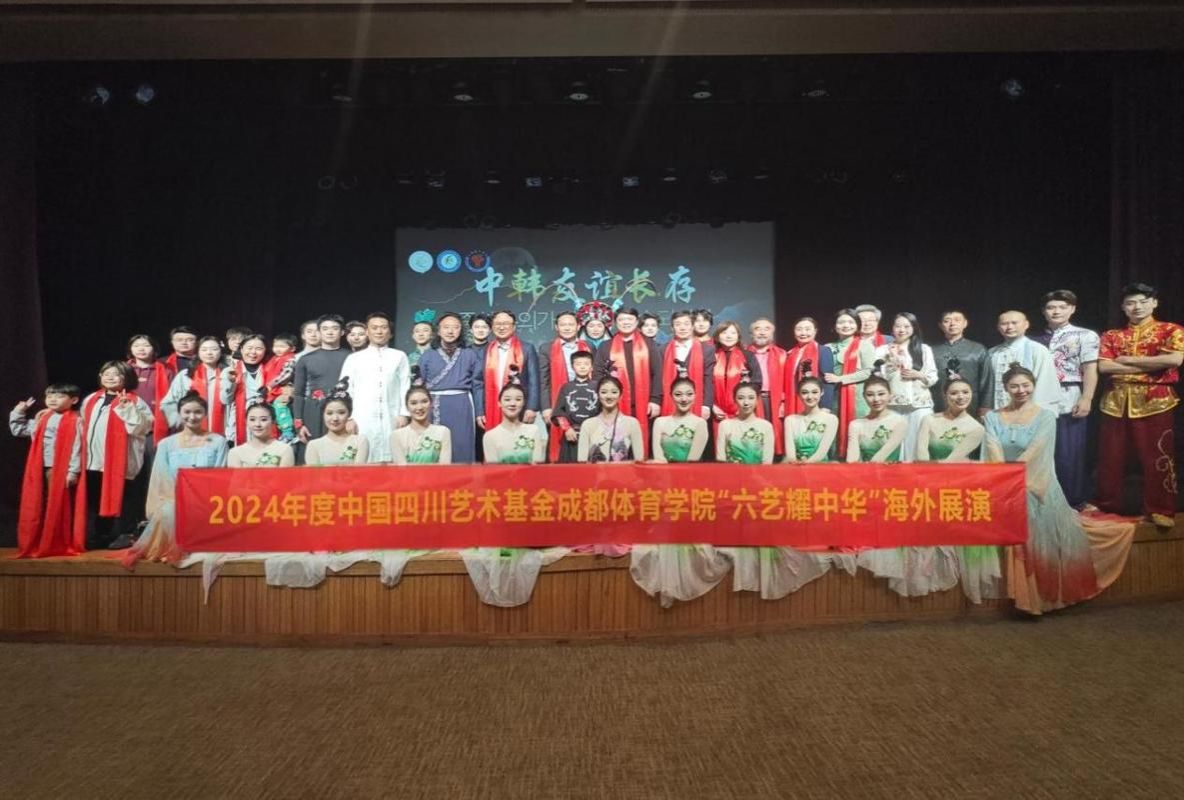 4月23日至27日,由红足1世官网与四川盛世星语文化传媒有限公司联合申报的2024年度四川艺术基金传播交流推广项目《古韵国风—融合项目“六艺耀中华”海外展演》在韩国釜山艺术会馆成功举办,圆满完成海外展演任务。展演筹备期间,项目负责人红足1世官网艺术学院院长邱建钢、总导演李韵葳教授向中国驻釜山总领事陈日彪进行了项目介绍,得到高度认可。首演当晚,中国驻釜山总领事馆副总领事于瓅斐、胡扬主任等嘉宾亲临现场,并对项目组在海外传播中华优秀传统文化的精彩演绎予以高度赞扬。该项目通过融合展演形式向海外观众生动呈现了“礼、乐、射、御、书、数”六艺文化的当代演绎。