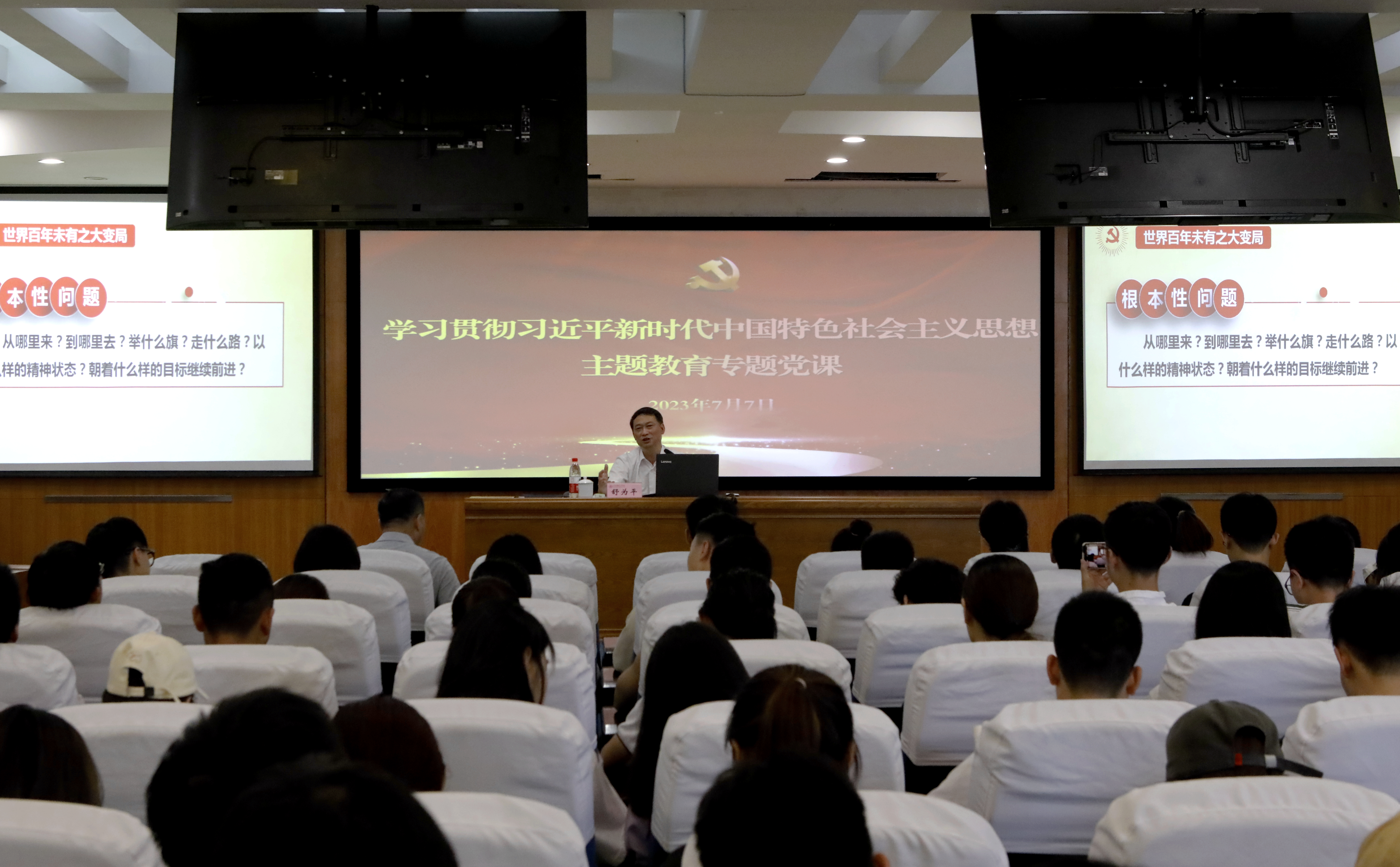 7月7日下午,学校党委书记舒为平以《深入学习贯彻习近平新时代中国特色社会主义思想,做有理想敢担当能吃苦肯奋斗的新时代成体好青年》为主题,为研究生学生代表和教师代表讲授学习贯彻习近平新时代中国特色社会主义思想主题教育专题党课。