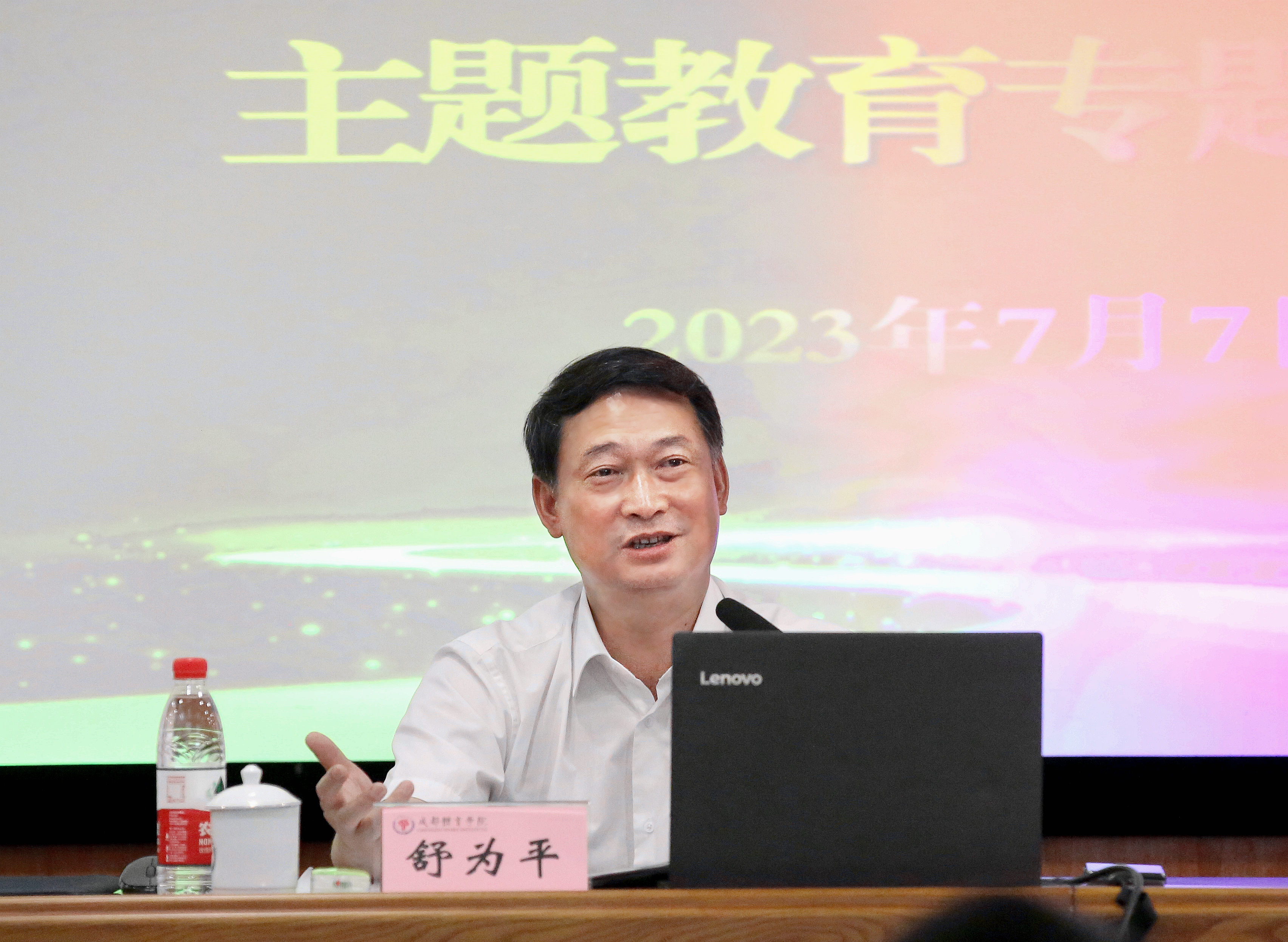 舒为平指出,开展主题教育既是深入学习贯彻习近平总书记重要讲话精神和党的二十大精神的具体实践,也是通过“以学铸魂、以学增智、以学正风、以学促干”推动学校高质量发展的实际行动。对于全校师生加强理论学习、提升思想认识,系统把握这一伟大思想的世界观、方法论和贯穿其中的立场观点方法,在新征程上凝心聚力夯实团结奋斗的共同思想政治基础具有重要意义。