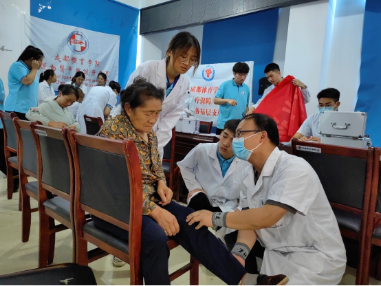 胥万兵副书记、邬红丽副校长一行抵达新华村后,在驻村干部刘豫洲和卢卿鑫的陪同下,首先观看了运动医学与健康学院实践团的健康医疗科普知识宣讲、爱心义诊,以及运动休闲学院实践团的趣味运动会,对实践团师生进行了慰问交流,反复嘱咐大家注意安全,做好防暑防暴雨等安全预案。并与吴亚男镇长交流了新华村的发展与教育情况,以及实践团的服务表现。