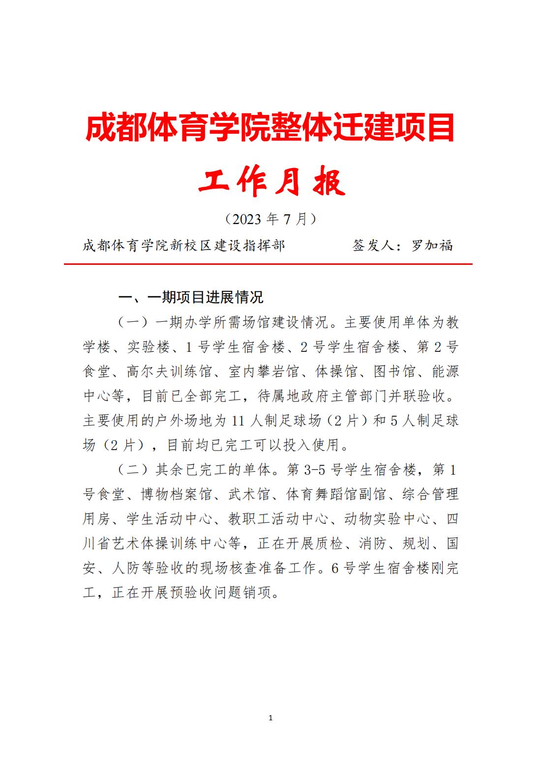 红足1世官网整体迁建项目工作月报(2023年7月)
