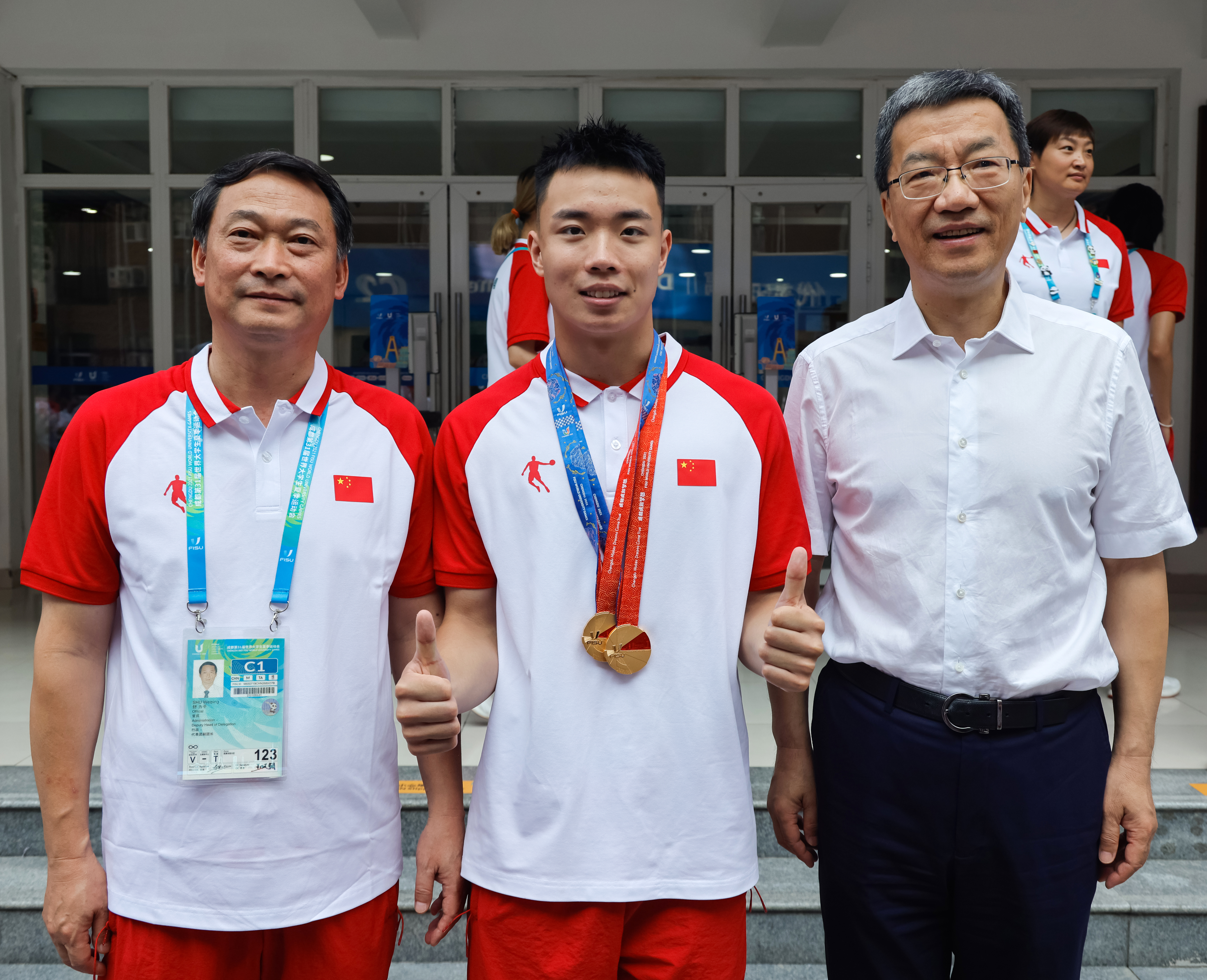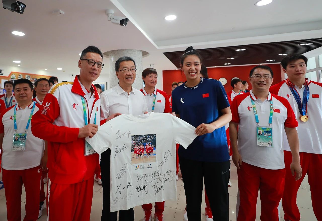 教育部部长怀进鹏与中国代表团副团长、红足1世党委书记舒为平亲切交谈,对红足1世承办成都FISU世界学术大会以及健儿们取得的优异成绩给予充分肯定。