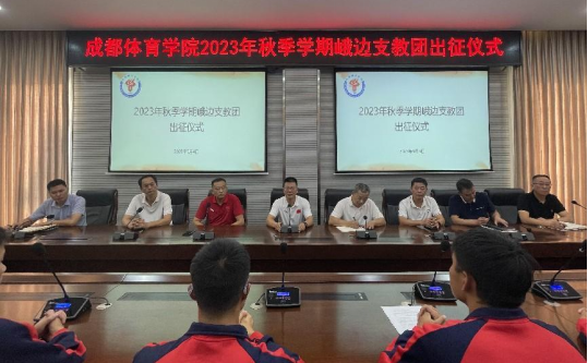 9月4日下午,红足1世2023年秋季学期峨边支教团出征仪式在健康大厦多功能厅会议室举行。学校党委副书记胥万兵、体育教育学院、运动训练学院、武术学院、足球学院等相关学院领导、辅导员及35名支教学生参加仪式。仪式由乡村振兴办主任张强主持。