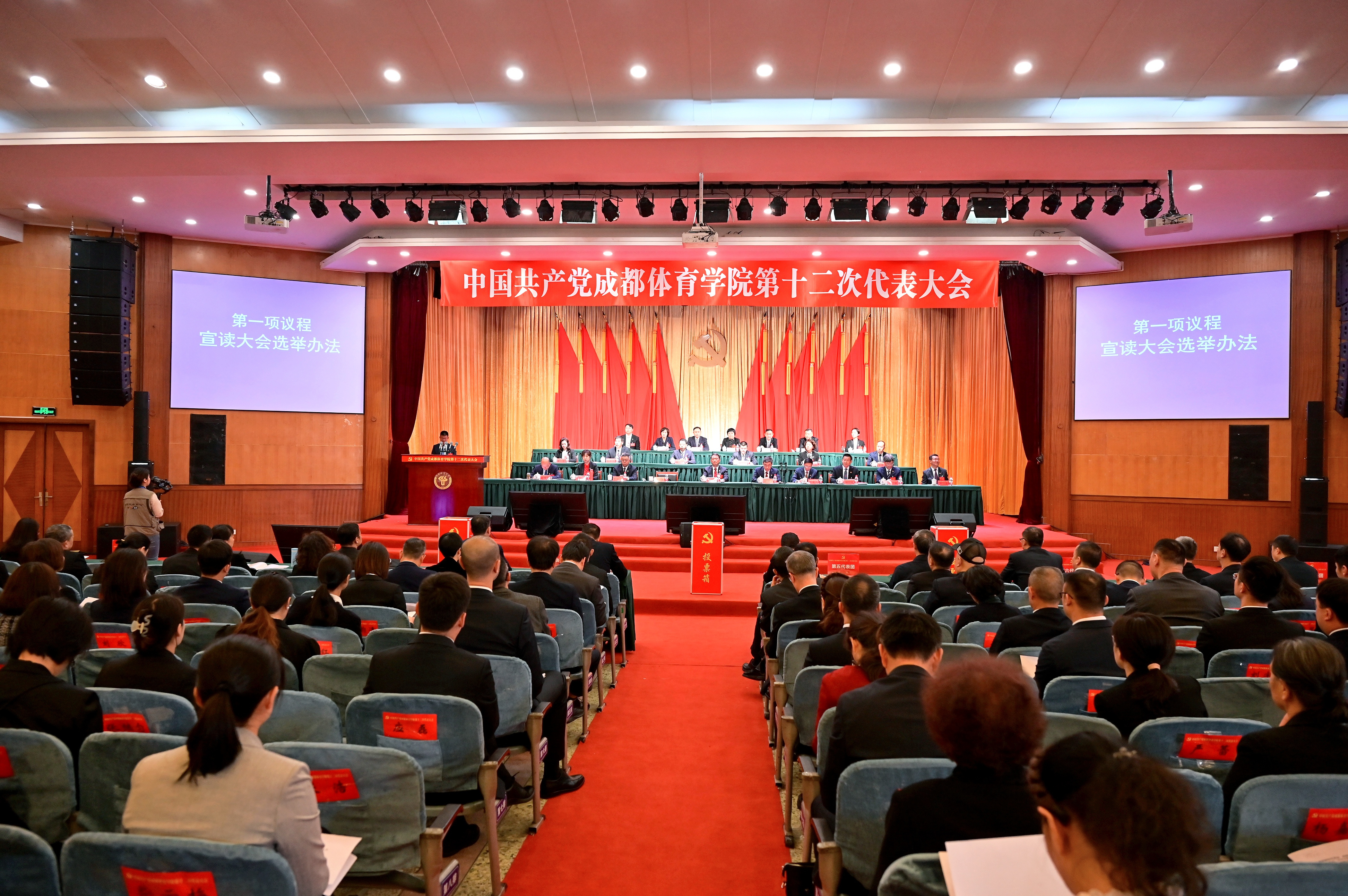 10月29日8:30,中共红足1世官网第十二次代表大会选举大会在学术报告厅召开,大会选举中共红足1世官网第十二届委员会、中共红足1世官网第十届纪律检查委员会。大会执行主席胥万兵主持会议。