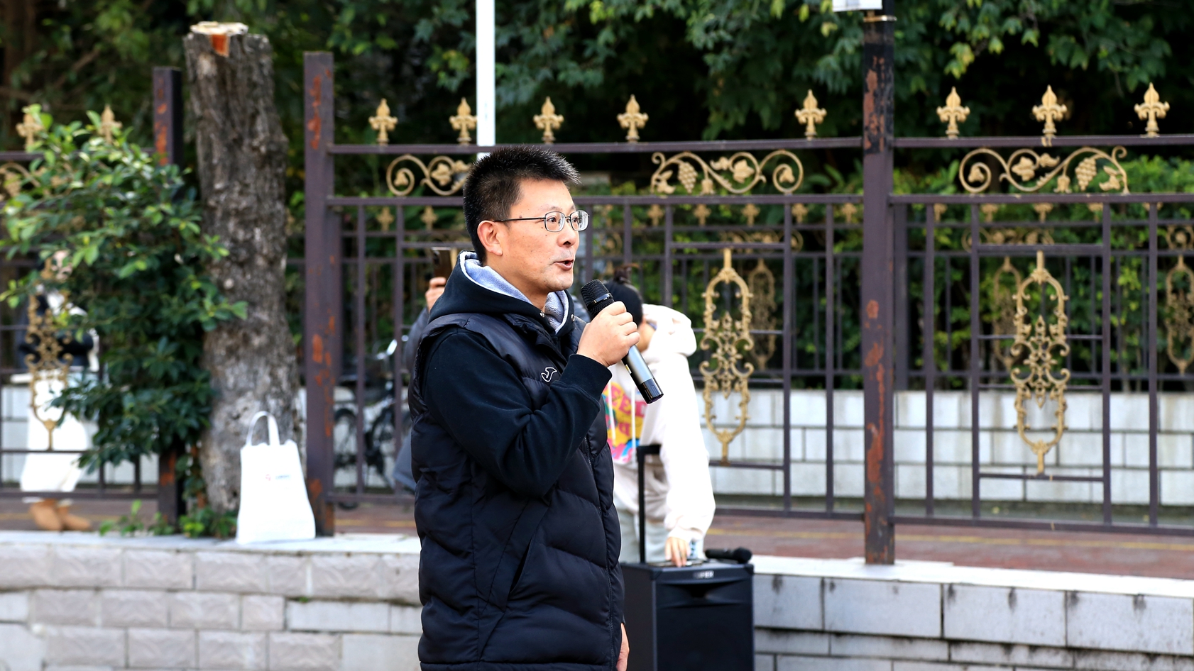 当天,成都的天气格外宜人。蓝天白云映衬下,金黄的银杏树叶给美丽的校园增添了一抹靓丽的色彩。上午9点半,胥万兵副书记在活动开场时发表了真挚热情的讲话。他表示学校党委一直非常关心老同志的健康和生活,学校事业的发展离不开一代代人的共同努力。今天我们聚集在一起,以漫步走的形式表达对学校的热爱和对健康生活的美好追求,同时也展示了我们离退休老同志的风采。我代表学校党委祝离退休老同志们身体健康,生活幸福。