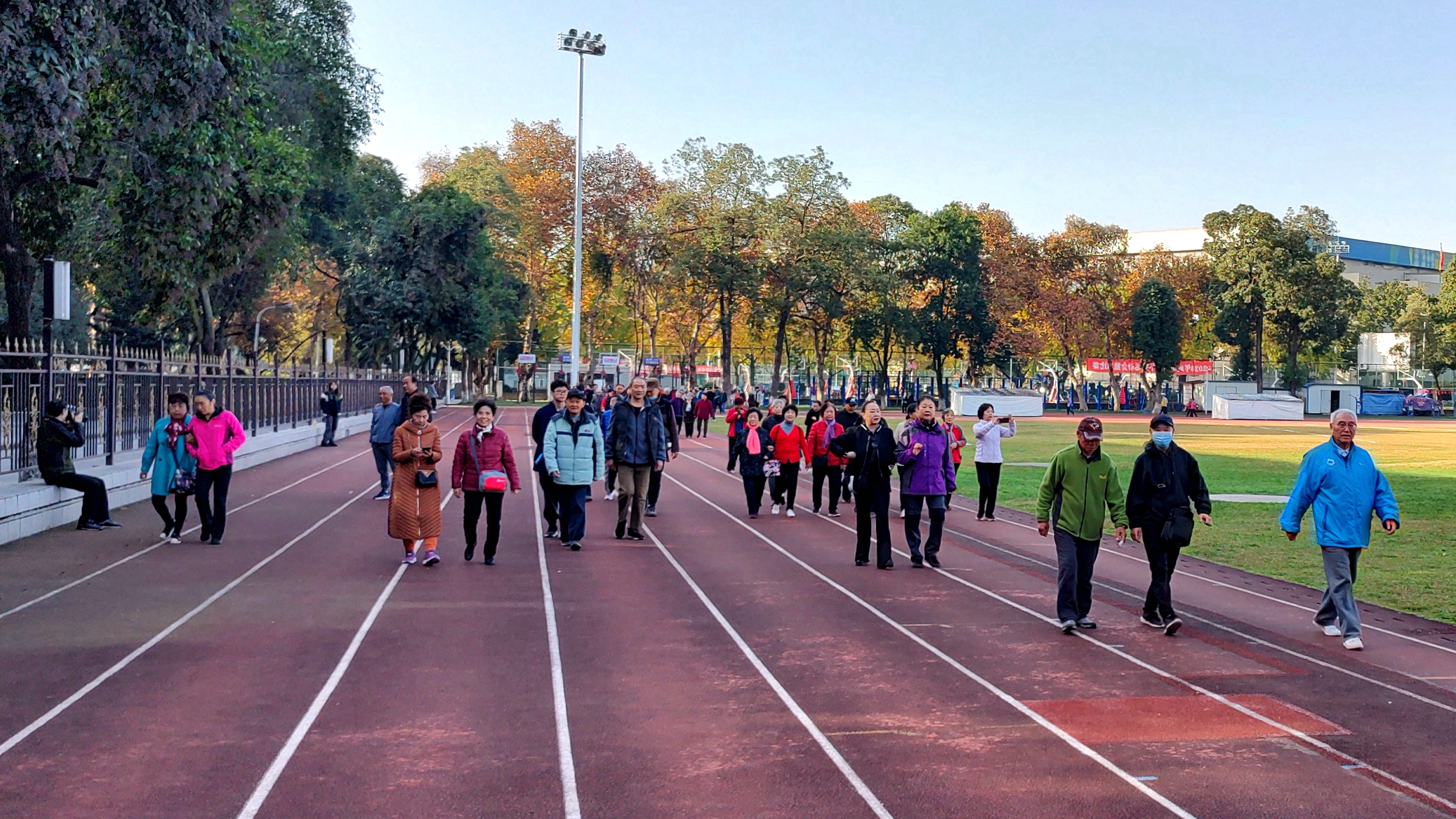 11月26日上午,学校组织离退休教师在田径场举行了首届“爱红足1世园 健康漫步行”活动,吸引了200余名离退休老同志参加。学校党委副书记胥万兵同志出席并主持了此次活动。