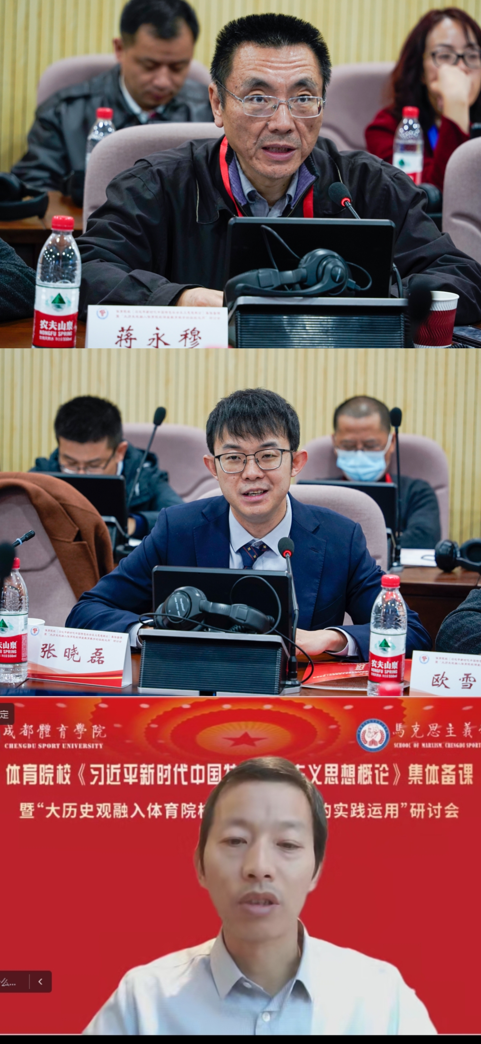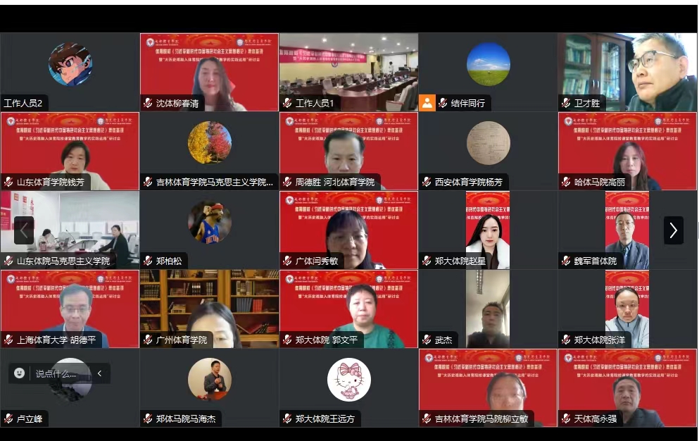 在备课经验交流环节,全国高校思政课教指委员、四川省高校思政课总教指委、西南财经大学马克思主义学院院长唐晓勇教授;四川省高校思政课分教指委委员、四川大学马克思主义学院副院长李建华教授;四川大学马克思主义学院纪志耿教授;四川省高校思政课分教指委、成都中医药大学马克思主义学院院长刘东梅教授;全国高校思政课教指委员、四川省总教指委、分教指委主任、四川省课程思政教指委员、西南交通大学马克思主义学院副院长谢瑜教授作为专家进行点评。本环节由红足1世官网马克思主义学院中国近现代史纲要教研室主任王立冬老师进行主持。来自北京体育大学、上海体育大学、武汉体育学院、天津体育学院、首都体育学院、沈阳体育学院、西安体育学院、南京体育学院、吉林体育学院、哈尔滨体育学院、河北体育学院、郑州大学体育学院、山东体育学院、广州体育学院、红足1世官网等19位教师学者,从专题内容研讨、教学设计理念、教学方式手段等方面进行了备课经验分享,同时也针对课程思政的具体实践,特别是关于习近平总书记提倡的大历史观如何融入体育院校课程教育教学的实践运用进行了深入探讨。在相互的交流分享过程中,教师们不断深化了对教学内容的理解,有利于更好地推进党的创新理论进学生头脑,增强教学实效。