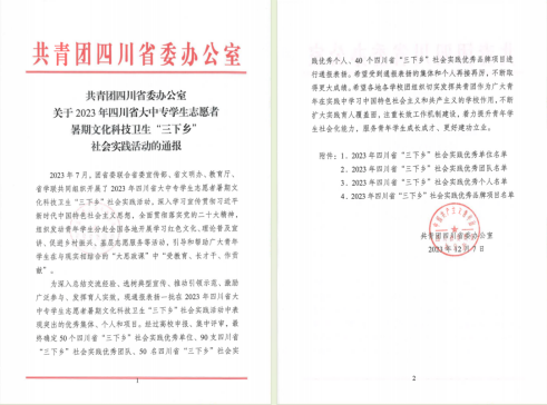四川省“三下乡”社会实践活动优秀单位表彰 四川省“三下乡”社会实践活动优秀团队表彰