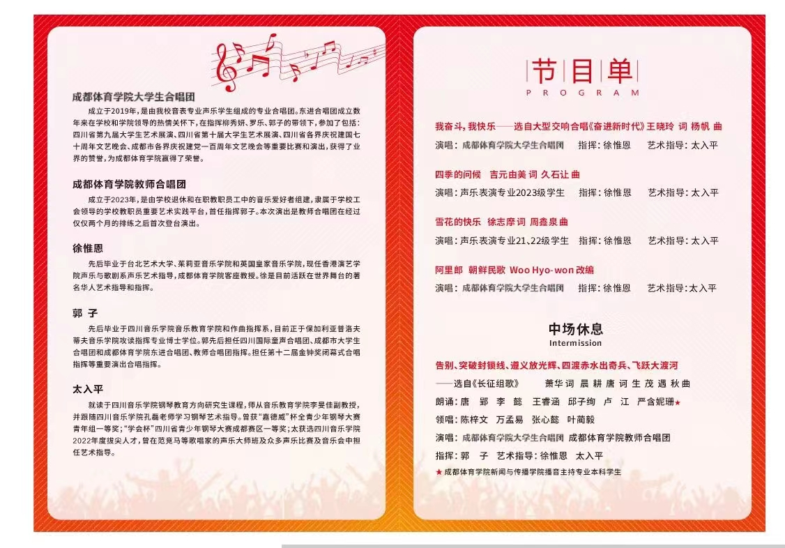 本场音乐会,用悠扬的歌声向武侯校区深情的告别,用激昂的歌声向新校区和即将到来的2024年致以亲切的拥抱。