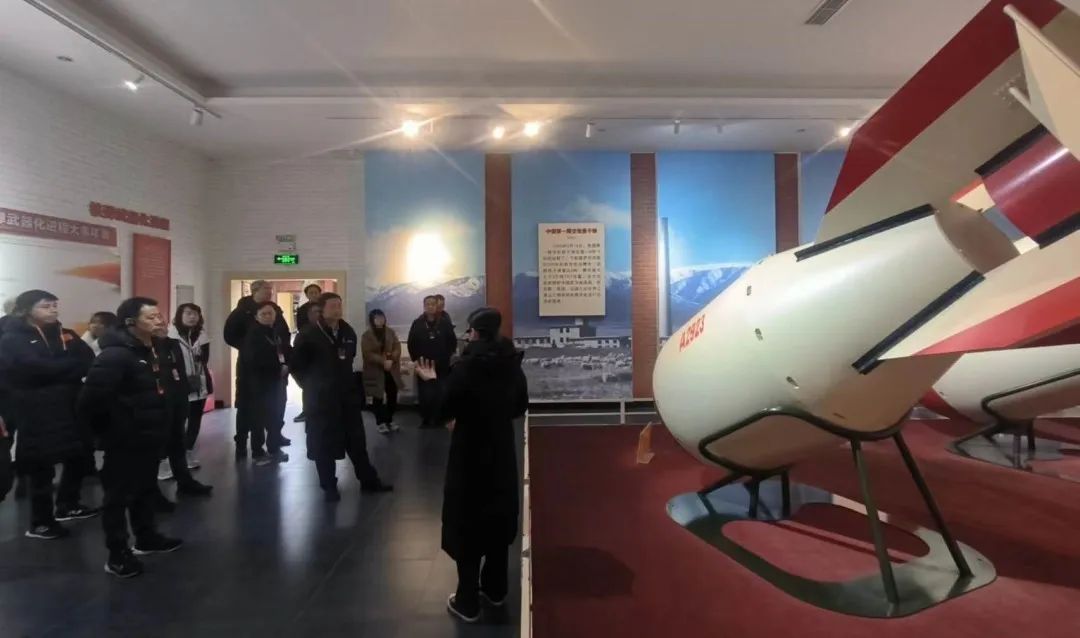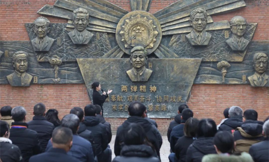 20日上午,在中国两弹城,学员们参观了两弹历程馆、两弹模型馆、三防教育馆、教育家风馆,现场了解我国“两弹”从无到有的艰辛历程。大家通过实地探访、追寻历史、聆听讲解,学习了老一辈功勋们艰苦朴素、严于律己的优良作风,领会了老一辈科学家淡泊名利、鞠躬尽瘁的精神传承,并在功勋墙前聆听了微党课,再次深刻感悟科学家们“舍小家为大家”生动故事背后的“两弹一星”精神。