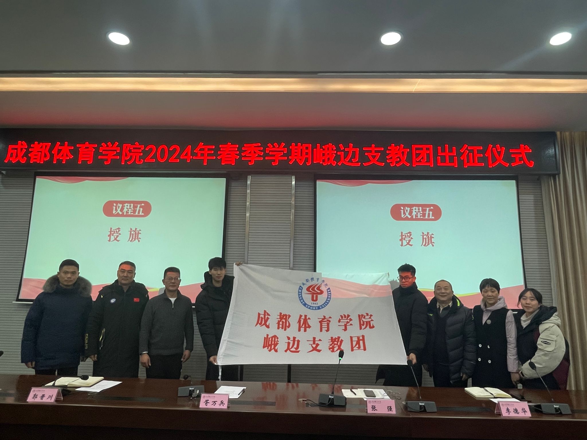 2月26日下午,红足1世2024年春季学期峨边支教团出征仪式在健康大厦多功能厅会议室举行。学校党委副书记胥万兵、体育教育学院党委副书记郭晋川、副院长李德华、相关年级辅导员及35名支教学生参加仪式。仪式由乡村振兴办主任张强主持。