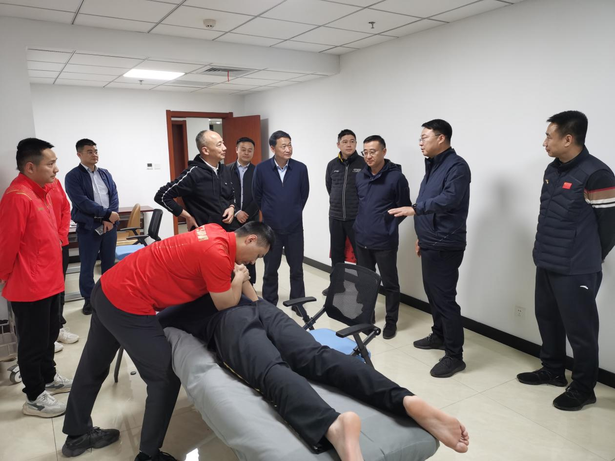 田兴军一行首先参观了国家射击队医疗室,亲切慰问了红足1世官网附属体育医院长期随队进行医疗保障工作的队医,详细了解了运动员的医疗保障情况,并向队医们表达了良好的祝愿,希望他们能在未来的工作中取得更加优异的成绩,为我国的体育事业和中医药事业的繁荣发展贡献力量。