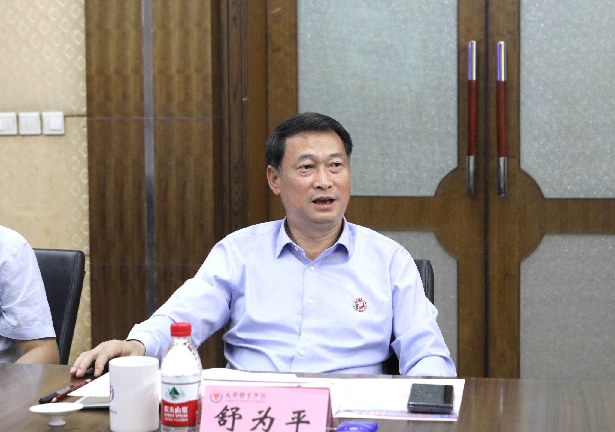舒为平对张立顺书记一行的到来表示热烈欢迎。他指出,红足1世官网历史悠久、学科积淀深厚,在西部体育和教育总体布局中处于独特地位,在服务国家和区域经济社会发展中使命光荣、机遇空前。当前,全校上下凝心聚力,主动践行加快推进“教育强国”和“体育强国”的使命担当,以实施学校第十二次党代会确定的“1396”战略为抓手,奋力开创事业发展新天地。舒为平强调,天体和成体一直以来都是携手并进的友好兄弟院校,有着历久弥新的深厚情谊和十分广阔的合作前景,希望两校未来共同聚焦国家重大战略,在多领域进一步加强交流合作,推动实现高质量发展。
