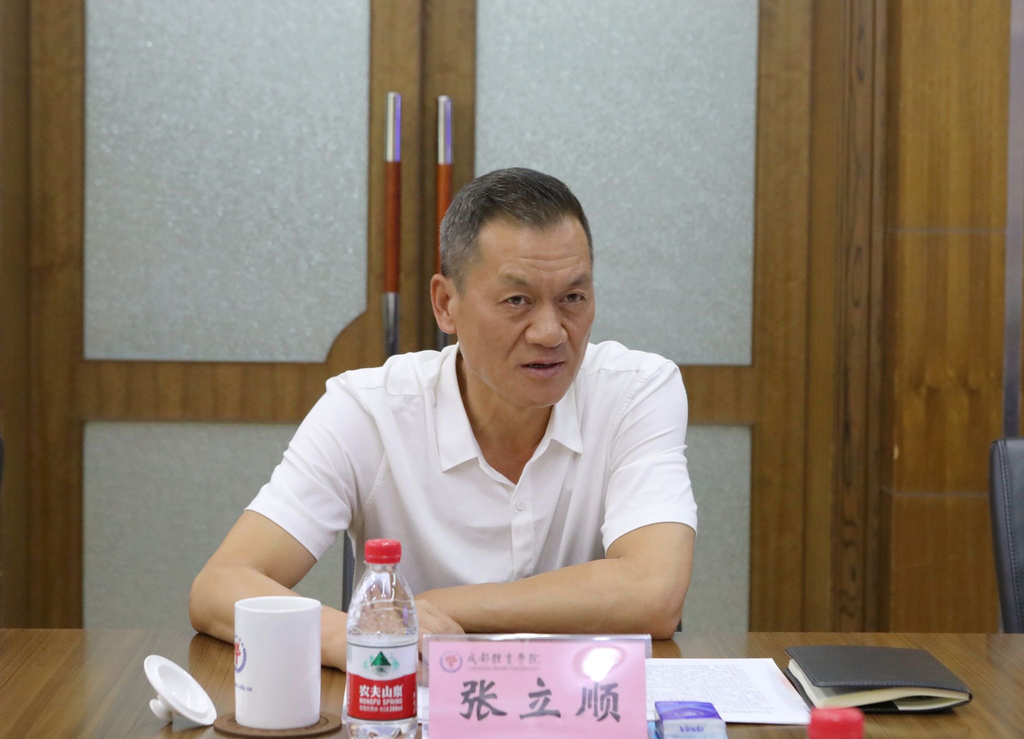 张立顺介绍了本次来访调研的目的和天津体育学院的基本情况。他表示,当前天体进入了新的发展阶段,在党建和思政工作、人才队伍建设、学科建设等方面都需要进一步加强。成体作为区域独树一帜的高等体育院校,在全面加强党的领导、加强体育科技创新、深化学科融合发展、提升自主人才培养质量等方面成绩突出,特别是推动学校高质量发展的宏观举措很值得借鉴。希望两校强化协同联动,在有关方面进一步深入交流合作,取得更多成果。