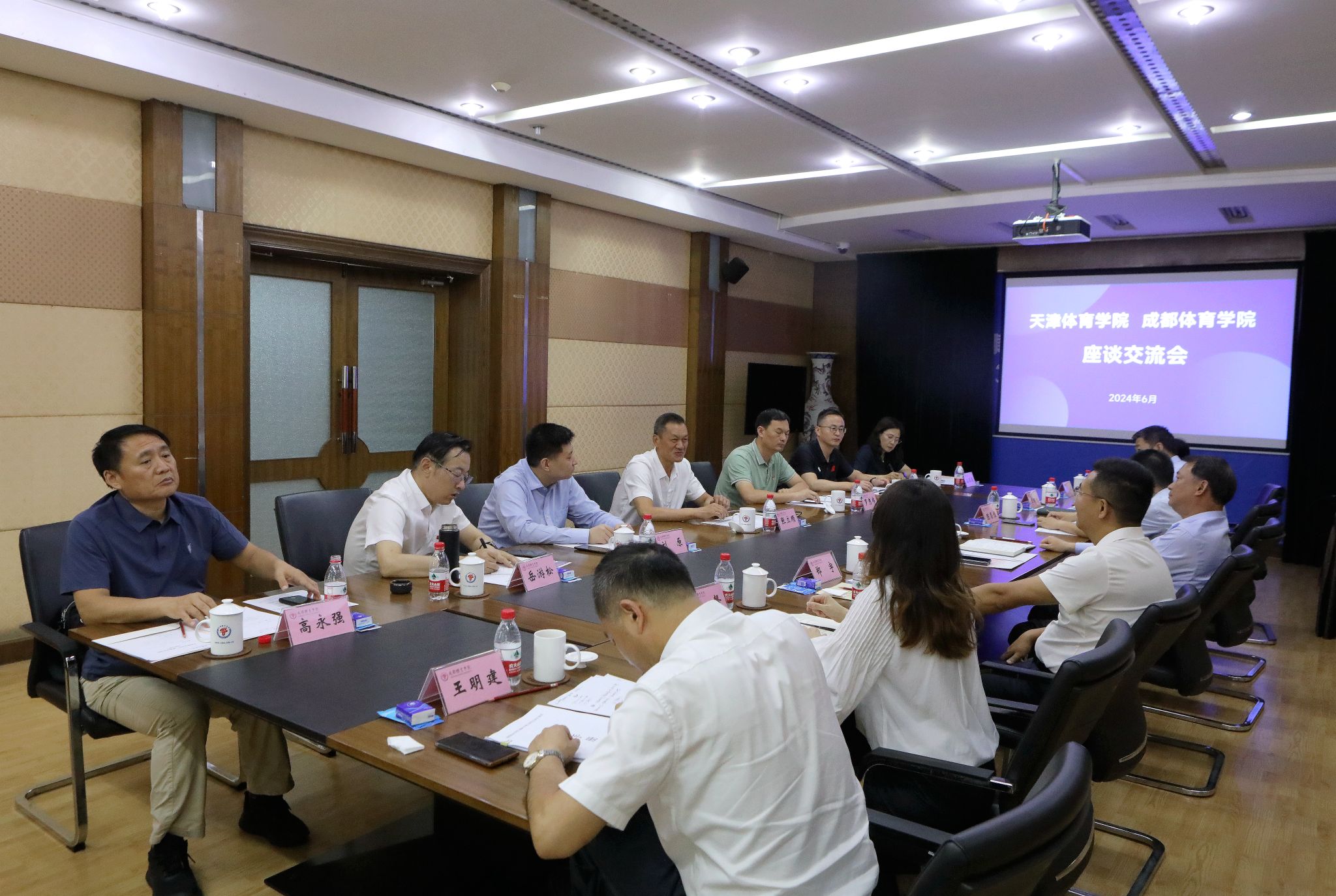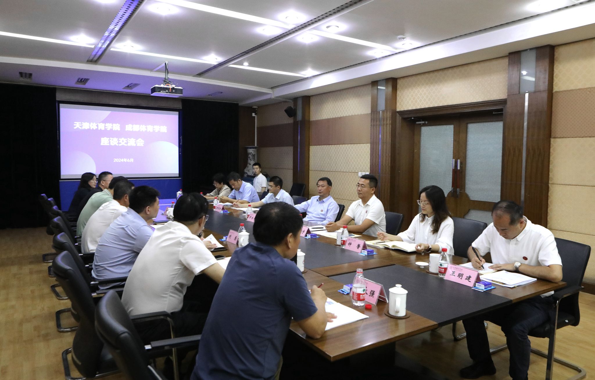 天津体育学院党委办公室(院长办公室)、宣传部、科研与研究生处、教务处(招生办公室)、马克思主义学院,学校党委办公室/校长办公室、发展规划处、教务处、研究生院/学科建设处、马克思主义学院等双方其他有关部门和单位负责同志参加了座谈和对口交流。