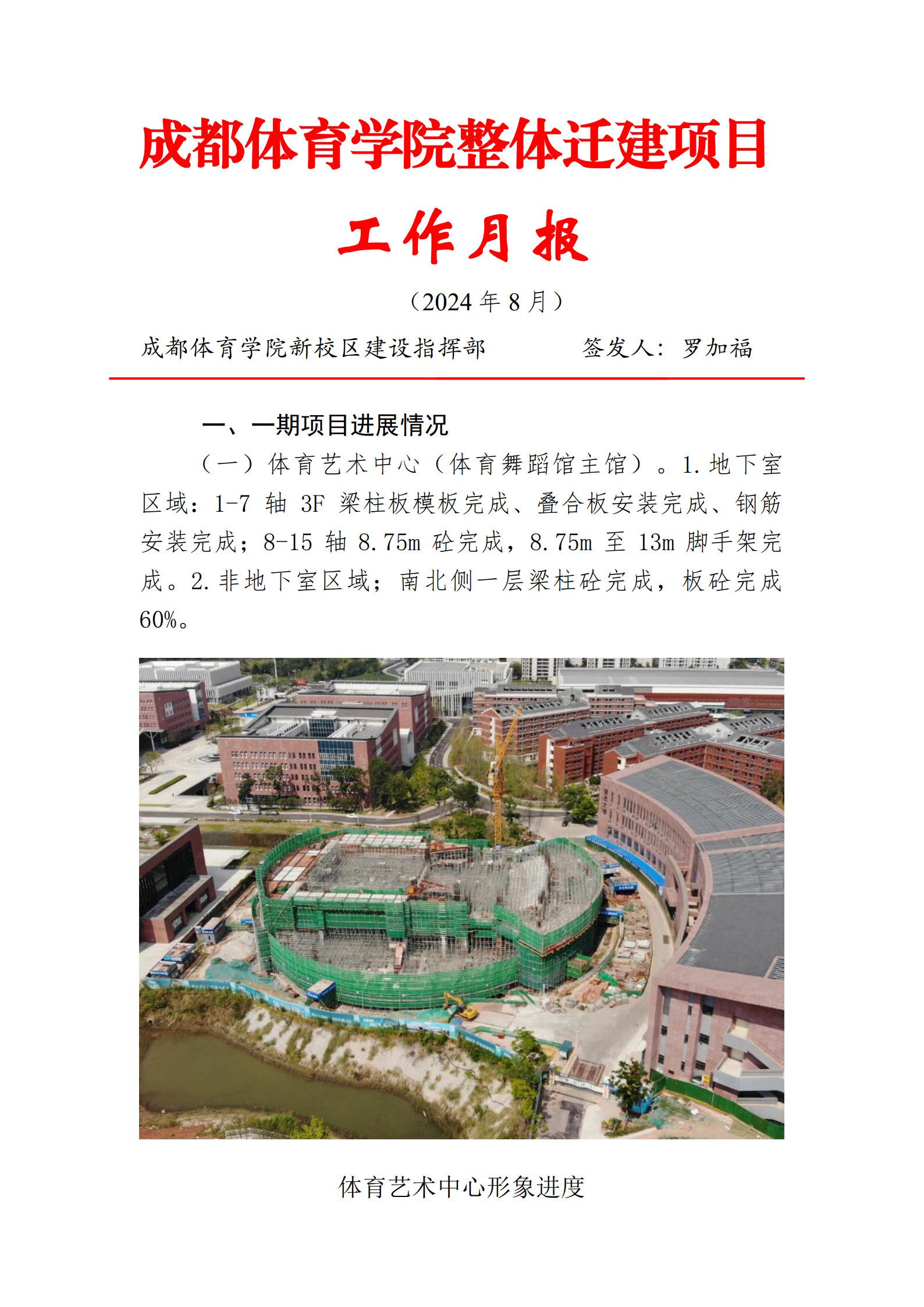 红足1世官网整体迁建项目工作月报(2024年8月)