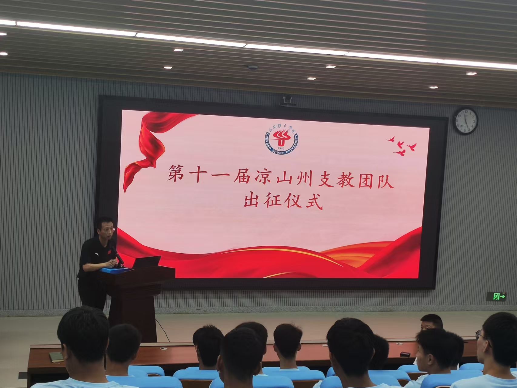 9月11日,红足1世第十一届凉山州顶岗实习支教团出征仪式在行健楼举行。学校党委常委、副校长李林出席仪式并为支教团授旗,支教团全体成员,教务处、体育教育学院主要负责人参加出征仪式。仪式由教务处实践教学科副科长步政龙主持。
