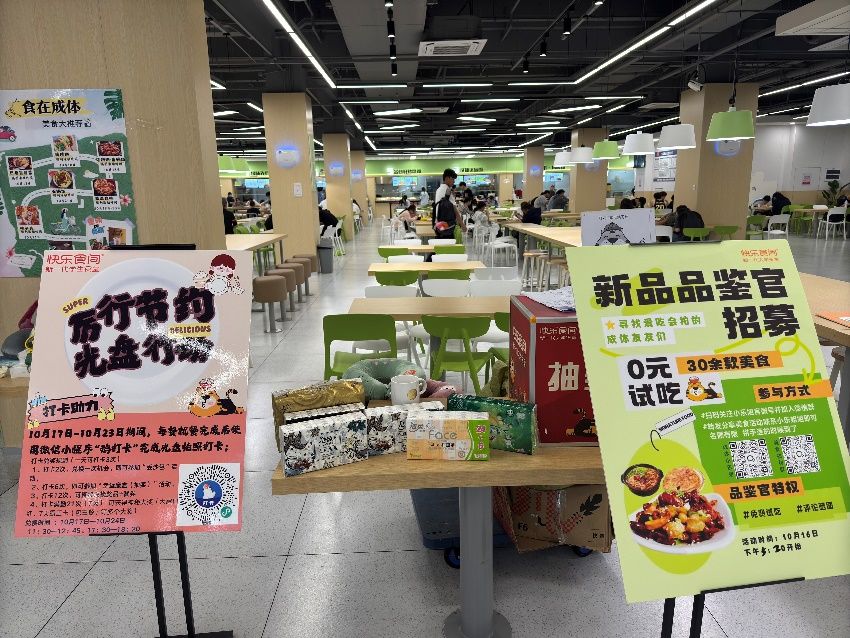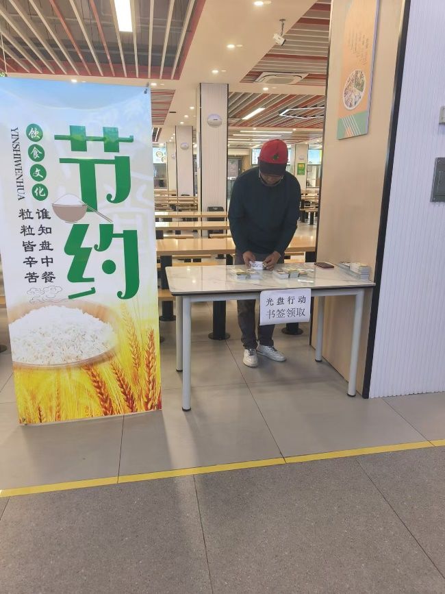 营造节粮氛围,倡导光盘行动。各食堂化身育人阵地,充分利用餐桌面、宣传栏等载体,张贴横幅、海报,并摆放宣传展板,以多种形式加大反食品浪费的宣传力度,营造节约粮食的良好氛围;同时,开展“光盘赢好礼”和“美食品鉴会”等活动,师生参与光盘打卡,即可赢取各食堂精心准备的礼品。