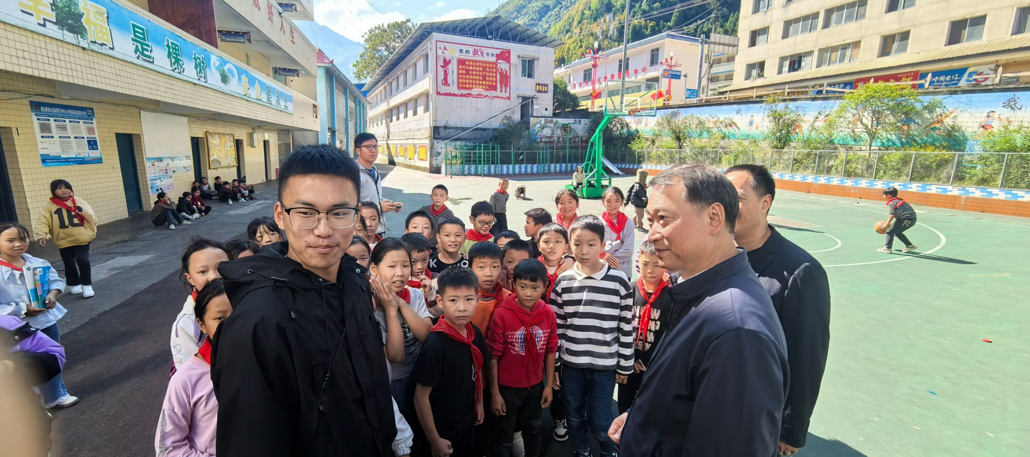 调研期间,舒书记一行在峨边彝族自治县舒安彬副县长等的陪同下,前往黑竹沟镇西河中学、黑竹沟镇中心小学、大堡镇初级中学、小学等5所学校,看望慰问了红足1世在峨边彝族自治县顶岗实习的支教同学;舒书记亲切询问了同学们的教学工作、生活状况,鼓励他们在支教过程中克服困难,磨练意志,高度赞扬了他们勇于吃苦、甘于奉献的精神;强调了这次教学实践对于同学们个人成长的重要性,希望同学们在支教期间多参与班级管理工作,丰富自身管理和教学能力,为未来发展打下坚实基础。