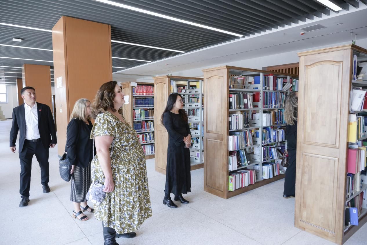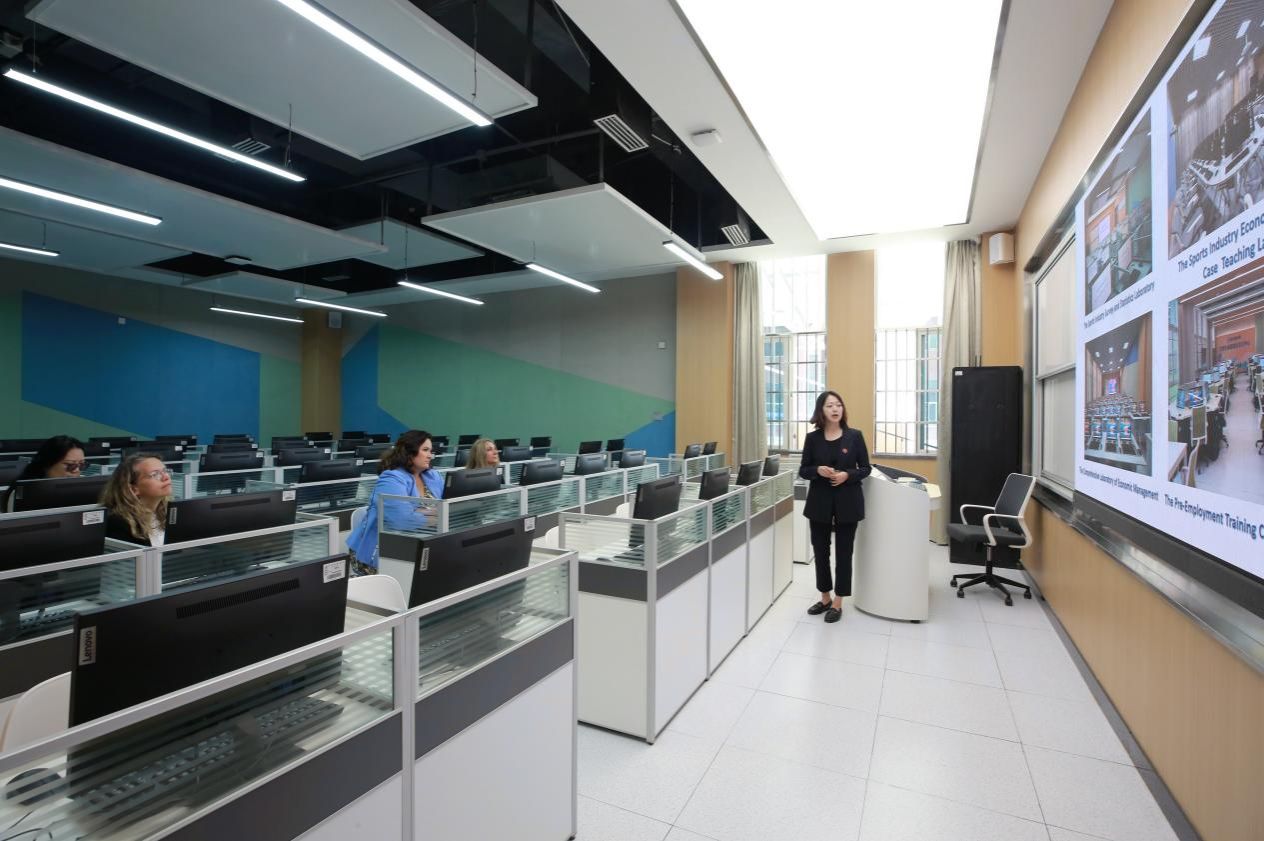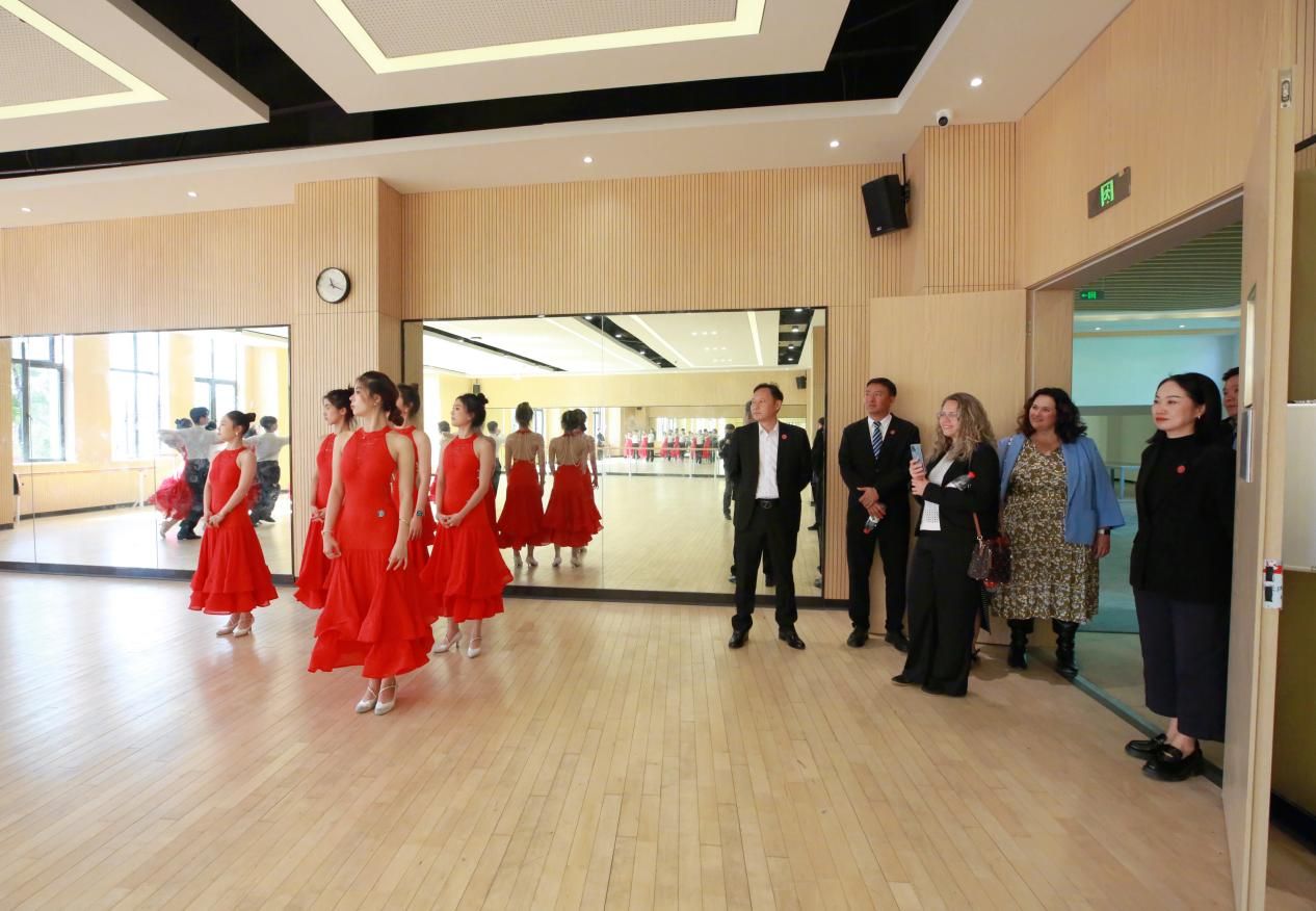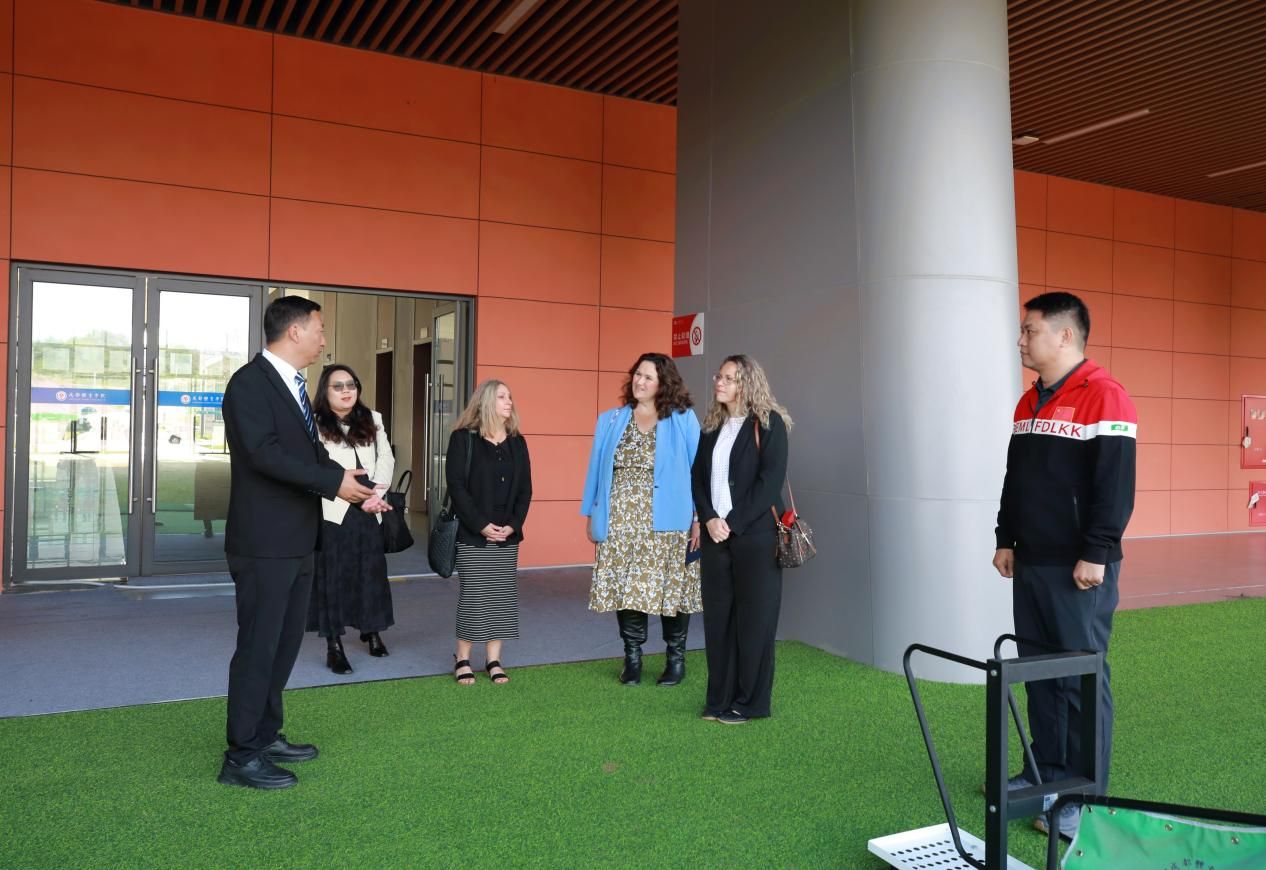 南印第安纳大学教务长雪莉·布朗特一行还参观了学校运动场馆,了解各学院办学情况,对红足1世优越的场馆设施和校园环境表示赞赏。