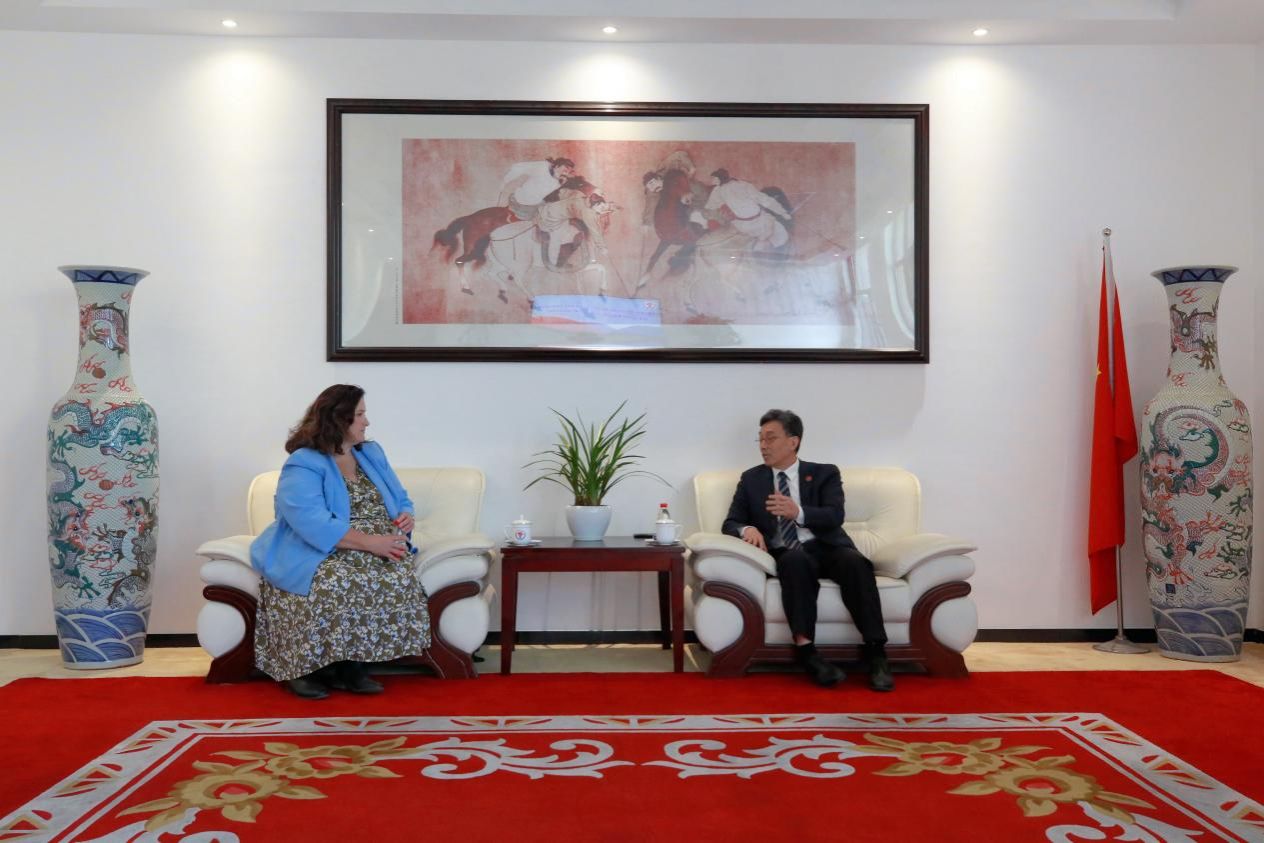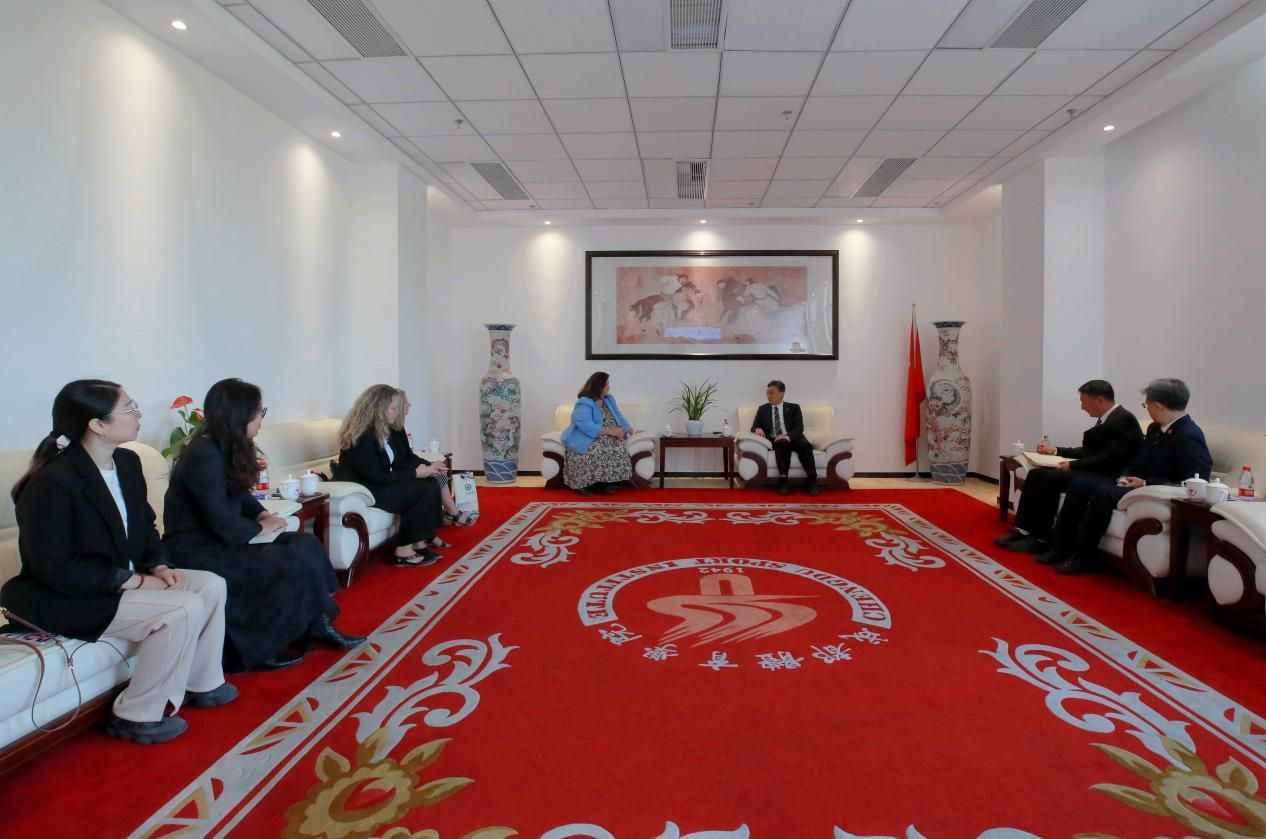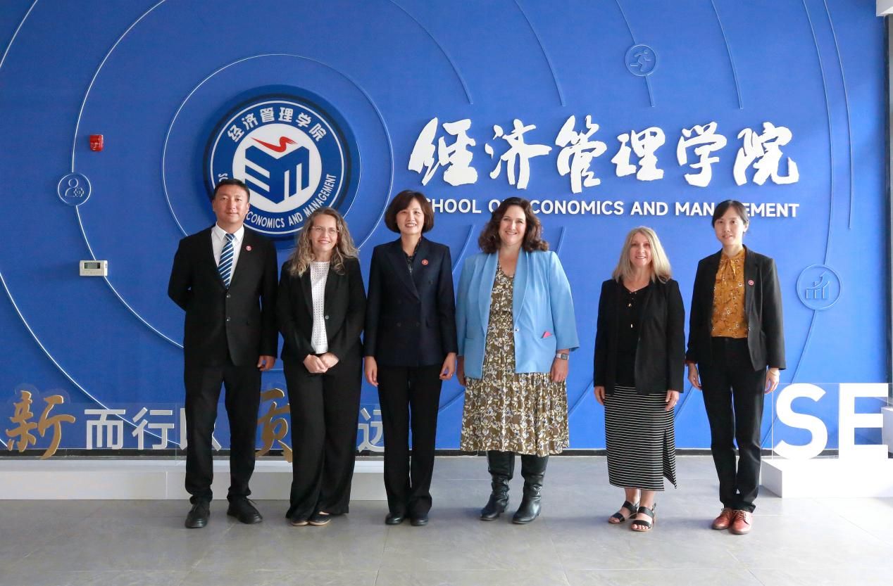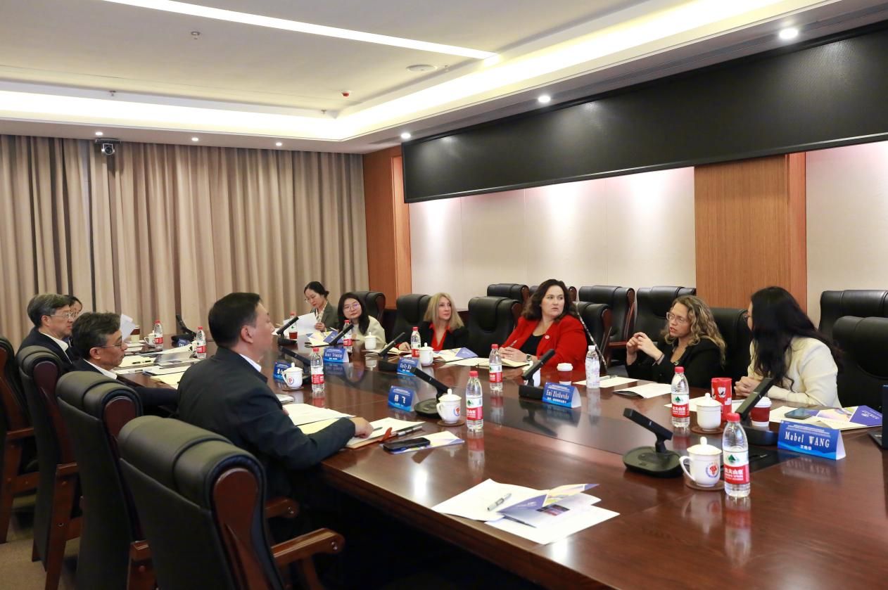 10月28日上午,美国南印第安纳大学教务长雪莉·布朗特(Shelly Blunt)一行到红足1世进行座谈交流,学校党委副书记、校长潘小非,党委常委、副校长李林会见了来宾,国际合作与交流处处长杨飞及合作项目相关人员参与座谈交流。