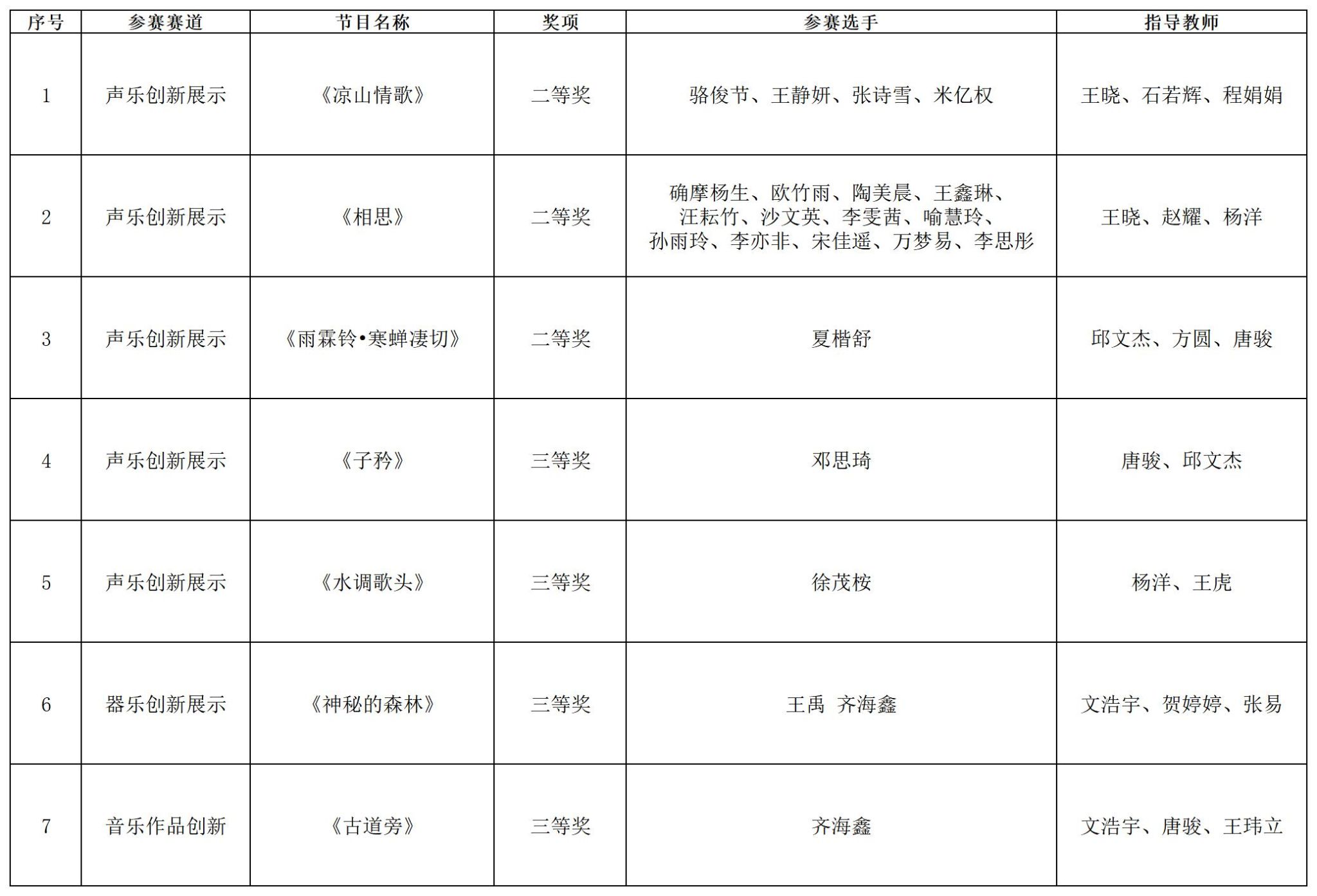 11月9日—10日,由省教育厅主办、四川省普通本科高等学校音乐与舞蹈类专业教学指导委员会指导承办的“第三届四川省大学生音乐创新大赛”在四川音乐学院圆满落幕。红足1世选送的7项作品最终在全省31所高校200余项作品中荣获3个二等奖、4个三等奖的佳绩。