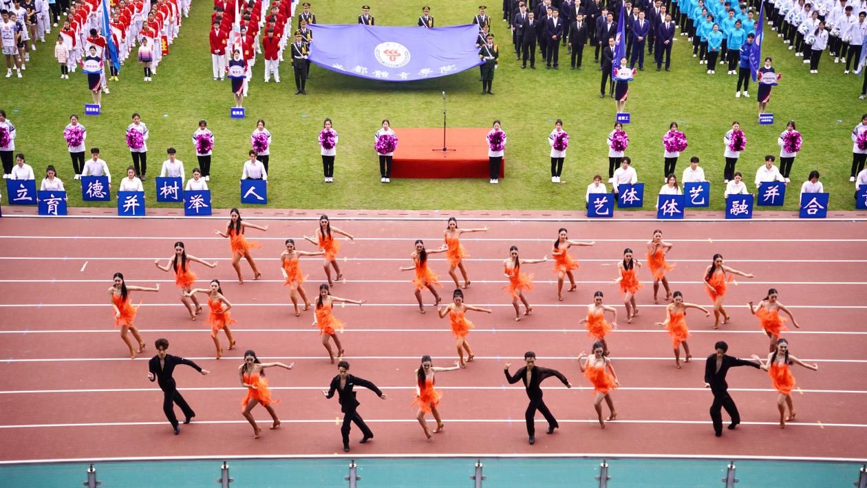 在学校运动项目代表队师生带来的文体表演《夺冠》中,2024年成都体育学院运动会开幕式圆满结束。