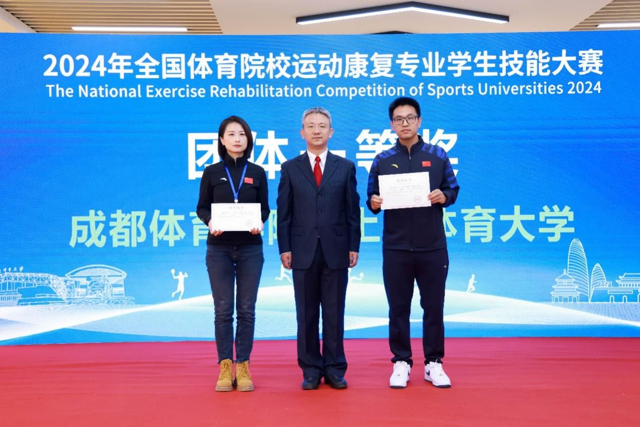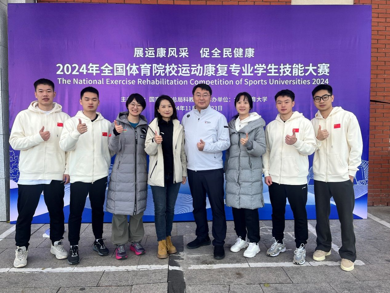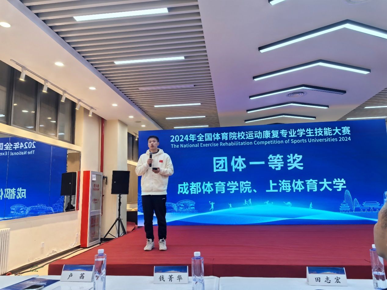 为贯彻落实党的二十大精神,加快推进体育强国、健康中国建设,提升全国体育院校运动康复专业人才培养质量,由体育总局科教司举办,北京体育大学运动医学与康复学院承办的“首届运动康复专业学生技能大赛”于2024年11月21日至23日在北京体育大学隆重举行。红足1世代表团在与来自全国14所开设运动康复专业的体育院校代表团的激烈角逐中以总分排名第一的佳绩荣获本次大赛“团体一等奖”;同时还以单项组最高成绩获得了“肌骨运动康复”和“运动损伤防护”两个单项奖;张春龙同学作为一等奖团队学生代表发言,并与各大院校学生分享竞赛心得;此外,运动康复教研室的张纯、王嘉瑛两位老师荣获“优秀指导老师奖”。
